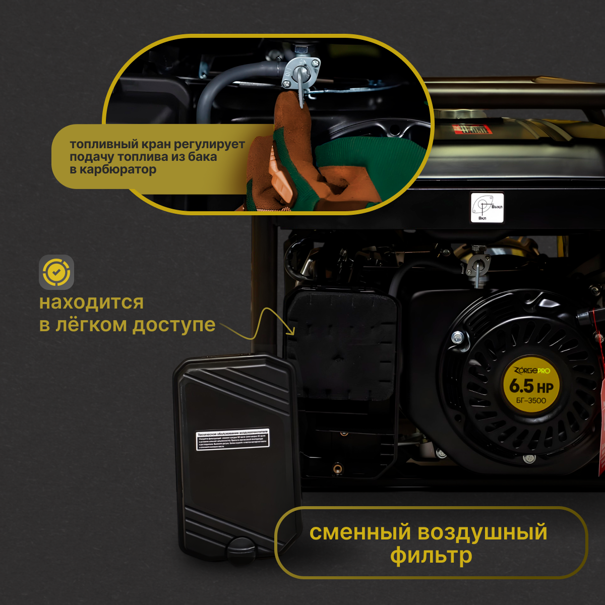 10 цен на Генератор ZORGEPRO БГ-3500, 4.375кВА, 2 розетки, ручной старт, мощность 3-3,5кВт