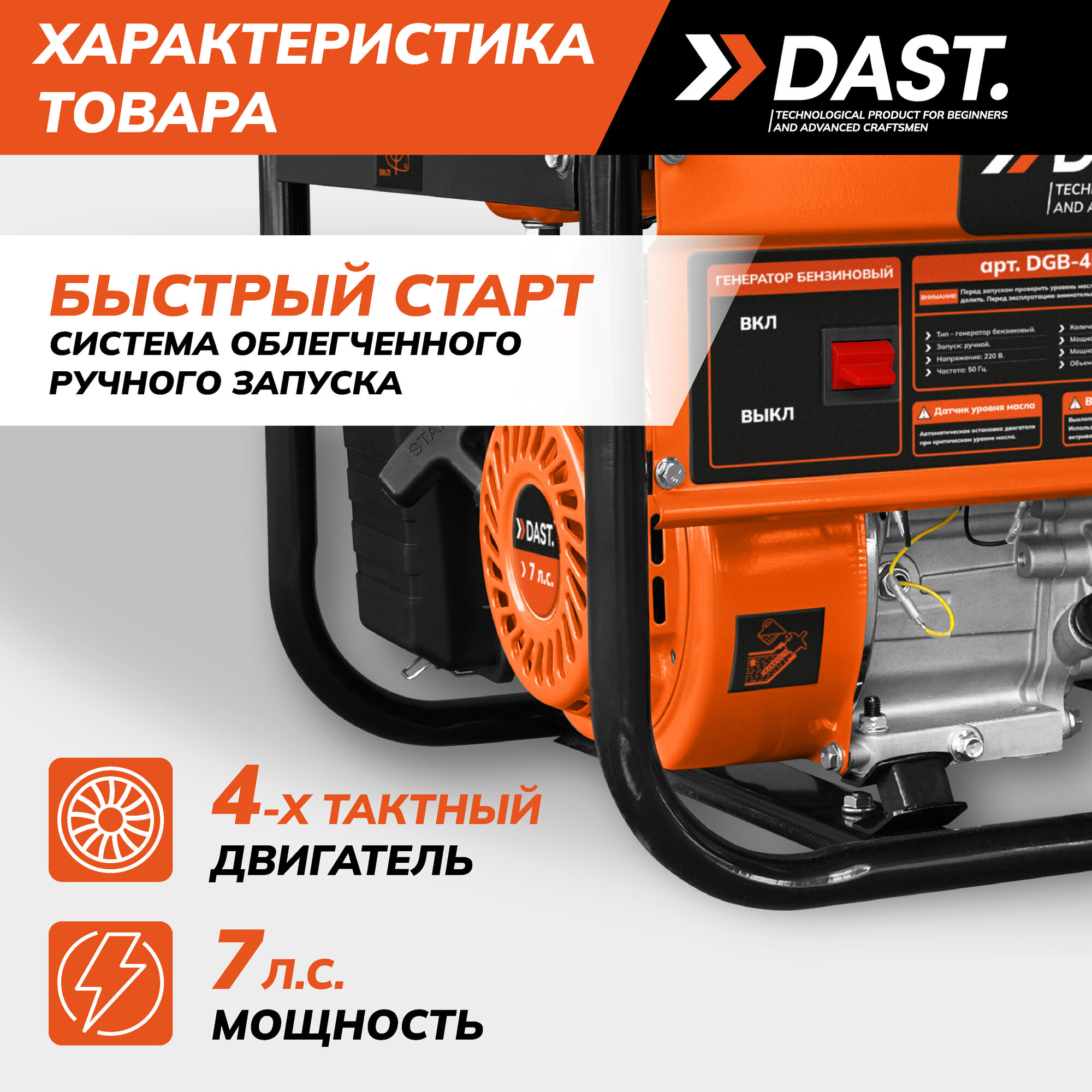 10 цен на Генератор бензиновый DAST 2.8-3 кВт, 15 л, 2 розетки, клеммы, 4-тактный DGB-4500