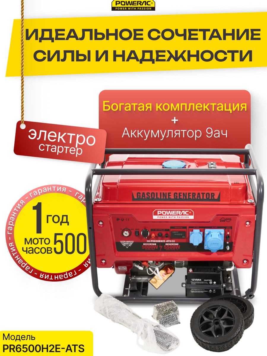 Генератор бензиновый электрический Powerac PR6500H2E-ATS (5.5кВт, 220В, 13л. с, АВТОЗАПУСК) информация: