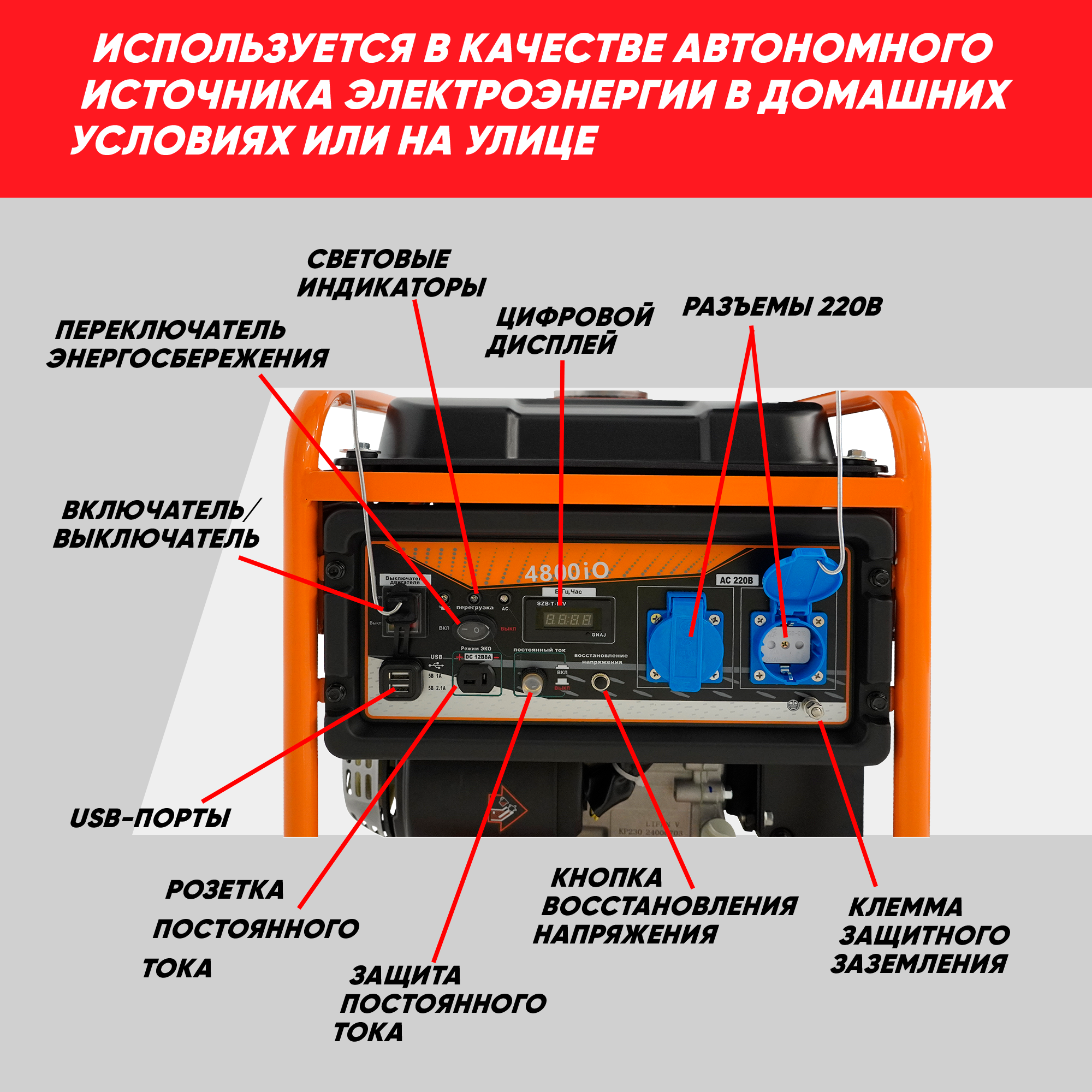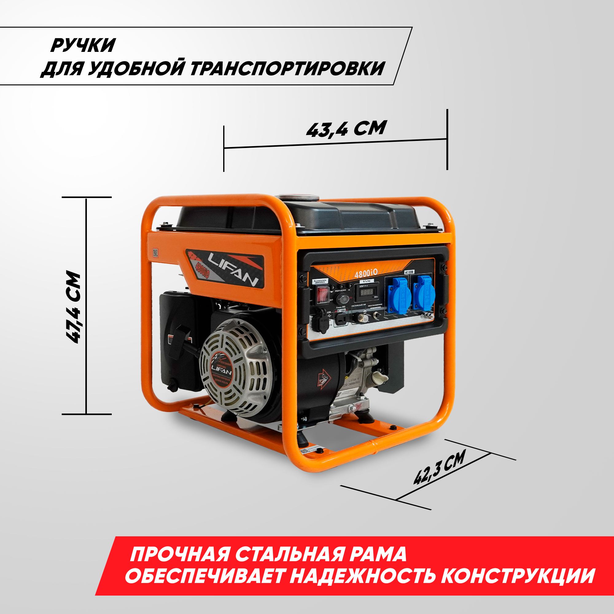Генератор бензиновый инверторный Lifan 4800IO (4,2 кВт, 220В, 10л, одна фаза) информация: