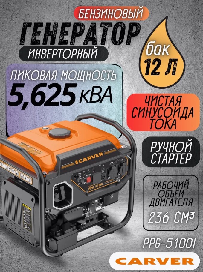 10 цен на Генератор CARVER PPG-5100I бензиновый