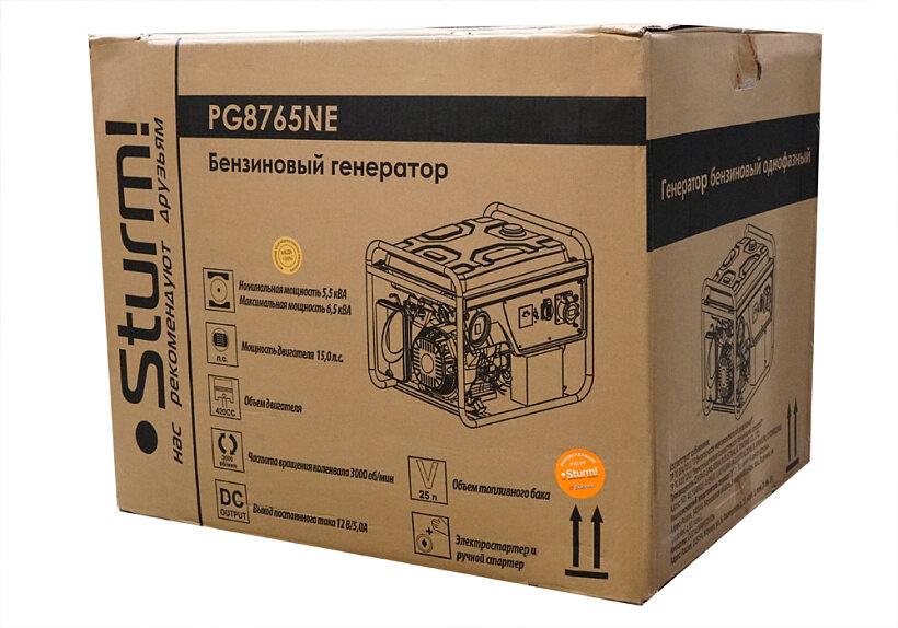 Отзывы на Электрогенератор Sturm, 6500 ВА, эл/ручн старт, АКБ, колеса, бак 25 л, 76 кг