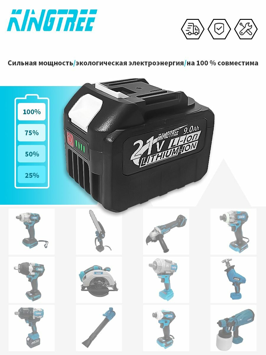 Аккумулятор KingTree, Li-Ion, 21 В, 9 Ач, для Makita, черный, 1 шт информация: