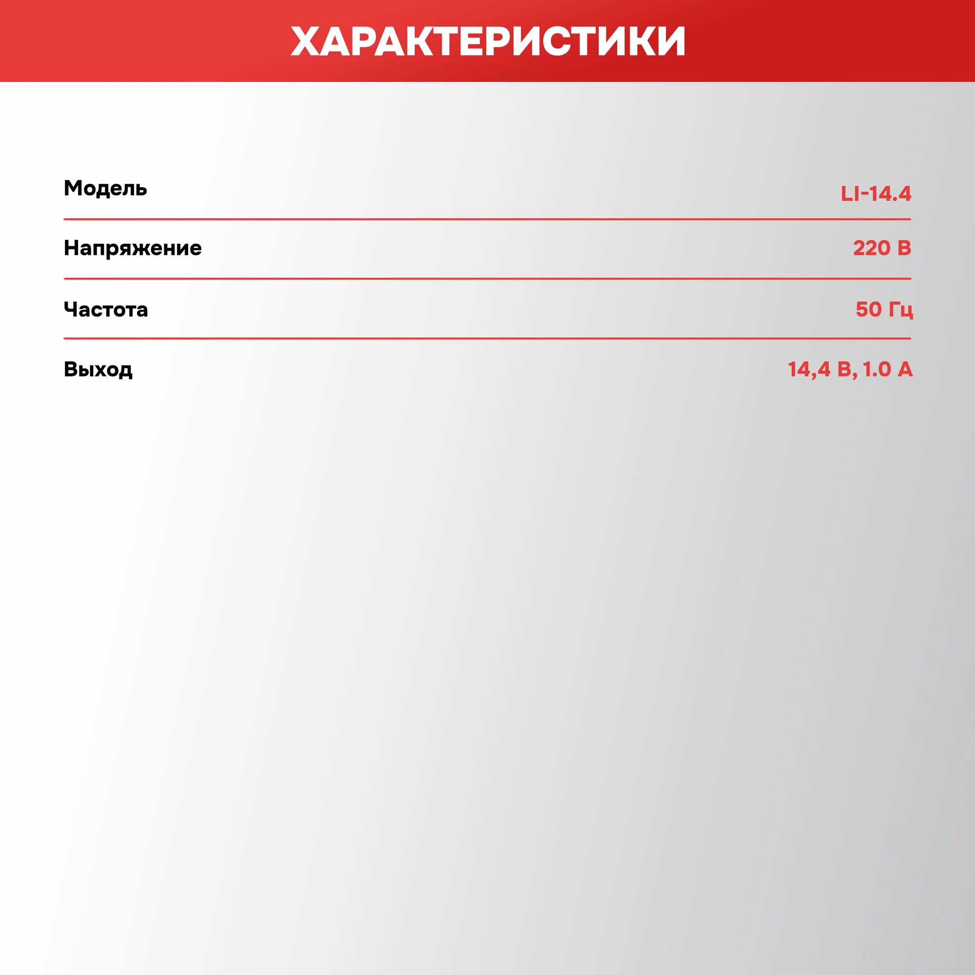 Блок питания (адаптер зарядное устройство) для Li-ion аккумуляторов 14,4-16,8V, LI-14.4 с индикацией заряда, разъем 5.5х2.5 информация: