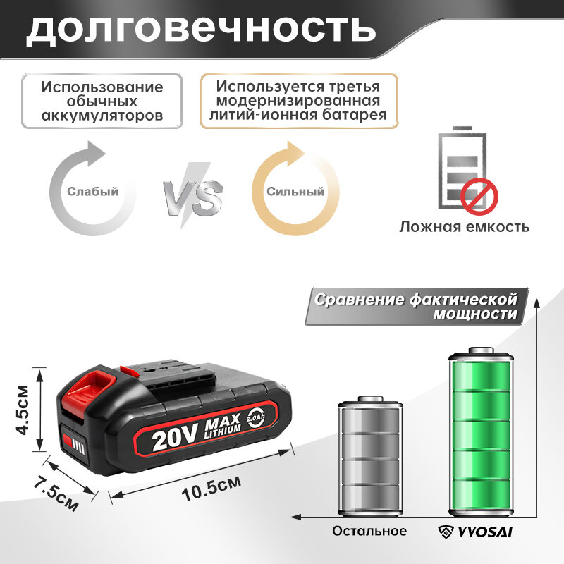 Отзывы на VVOSAI Портативный литий-ионный аккумулятор для отверток и электроинструментов 20 В Li-ion, 2,0 Ач, QY-20V-2.0AH-5C