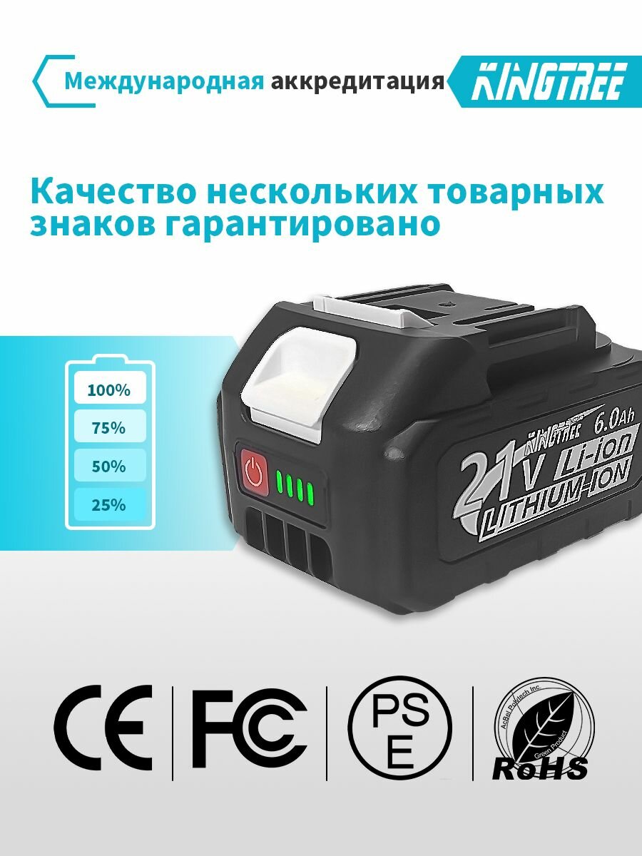 Kingtree Литиевая батарея для бытового электроинструмента, 21 В, 6,0 Ач (1 батареи)@1 информация: