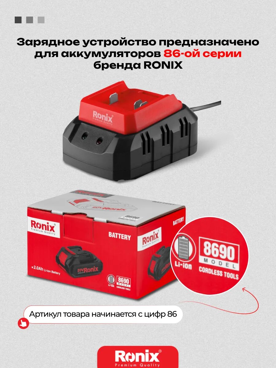 Зарядное устройство для аккумулятора Ronix 20V электроинструмента 2 Ah информация: