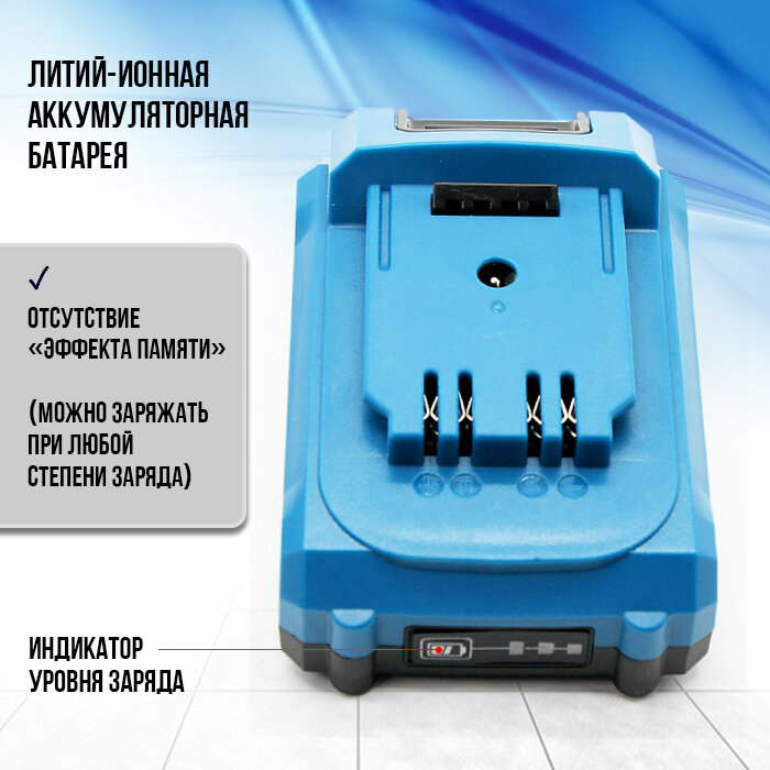 Аккумуляторная батарея, АКБ-21/2.0, для электроинструмента, слайдер, Li-Ion, 21В, 2Ач, голубая информация: