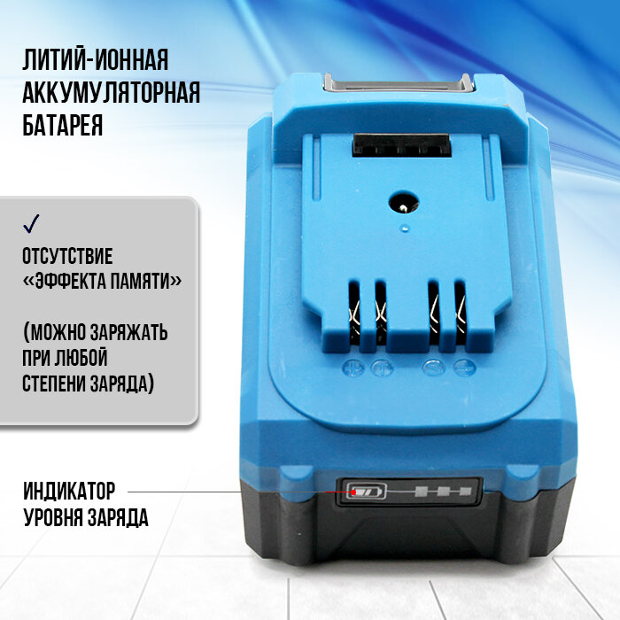 Аккумуляторная батарея для инструмента, 21В, 5Ач, Li-Ion, слайдер, индикатор емкости, голубая информация:
