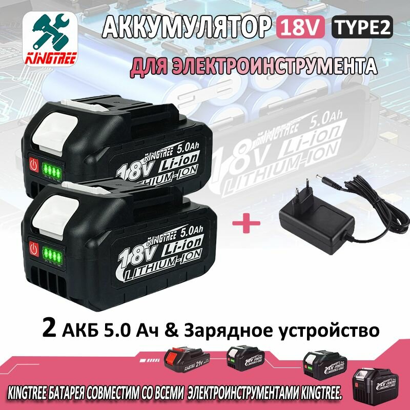 10 цен на Kingtree Аккумулятор для электроинструмента, Li-ion, 18В, 5.0Ач, 2 шт, с зарядное устройство BL1830 BL1840 BL1850