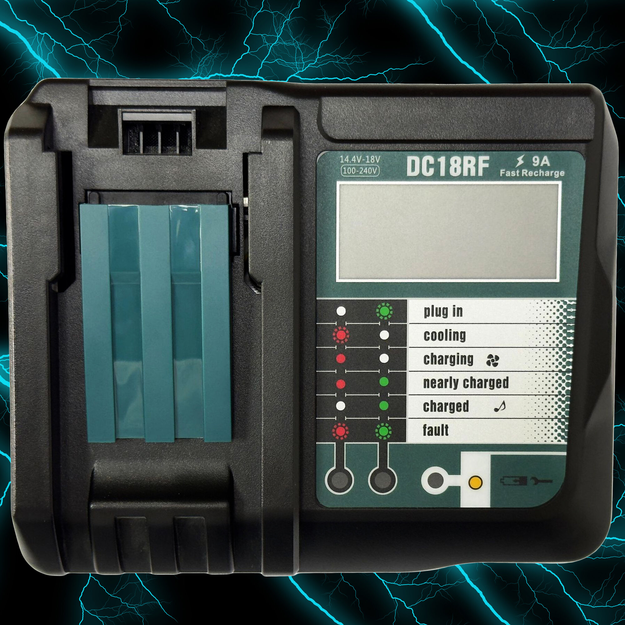 10 цен на DC18RF-9A, однозарядное зарядное устройство с экраном, подходит для зарядного устройства makita14.4V-18V для литиевых аккумуляторов (встроенные 2 охлаждающих вентилятора)