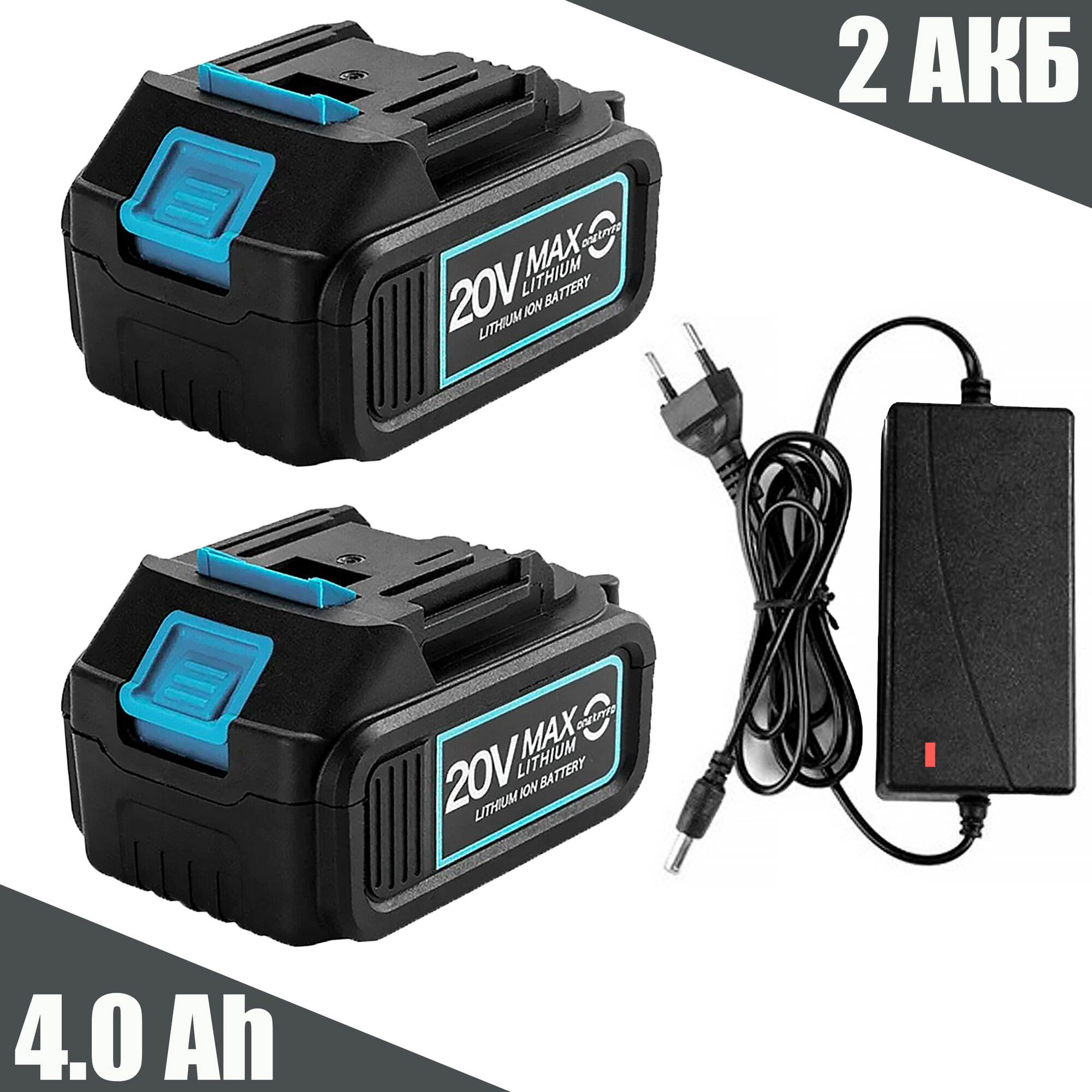 10 цен на Аккумулятор Батарея АКБ 20 вольт 2шт 4.0 Ah MAXLITHIUM и ЗУ для инструмента: шуруповерта, гайковерта, болгарки, пилы