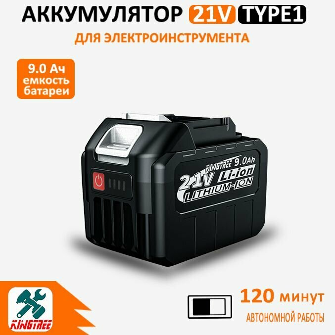 Отзывы на KingTree Аккумулятор большой емкости для электроинструмента 21 В 9,0 Ач(1 АКБ 9.0Ач)