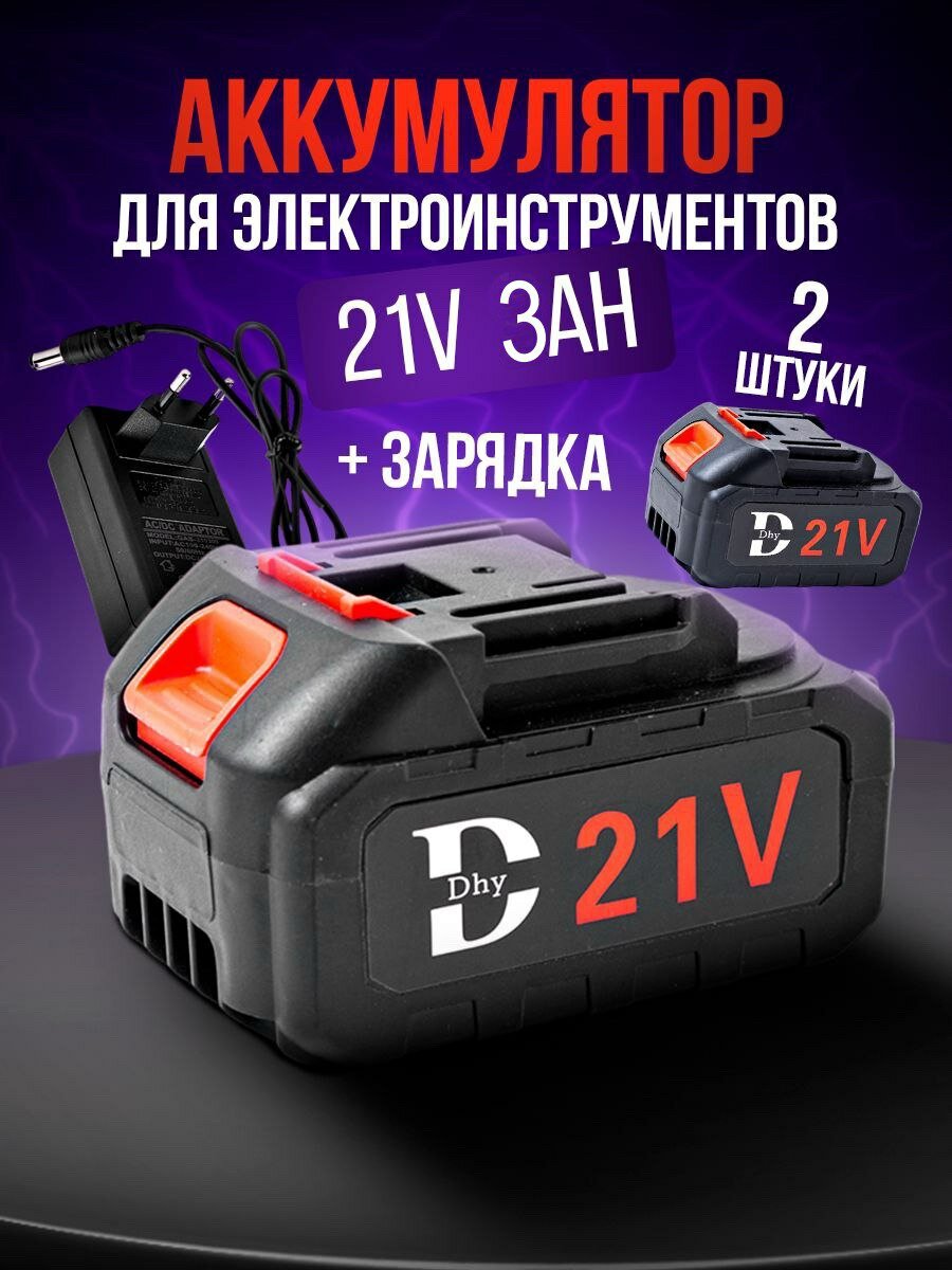 10 цен на Аккумулятор Dhy 21В, Li-Ion, 2 шт, с зарядкой, для электроинструментов