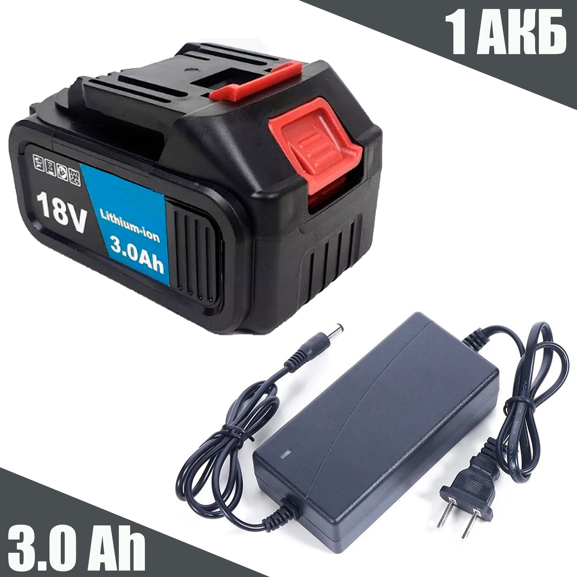 10 цен на Аккумулятор /АКБ/ Батарея 18 вольт 3.0 Ah и зарядное для инструмента - шуруповерта, гайковерта, сучкореза, болгарки