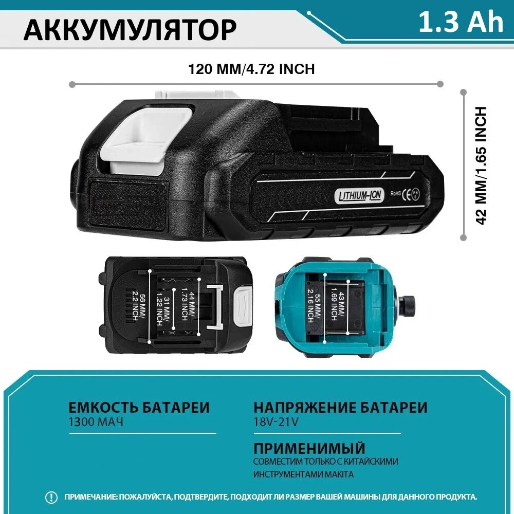 Батарея аккумуляторная Li-Ion, 21 В, 1.3 Ah информация: