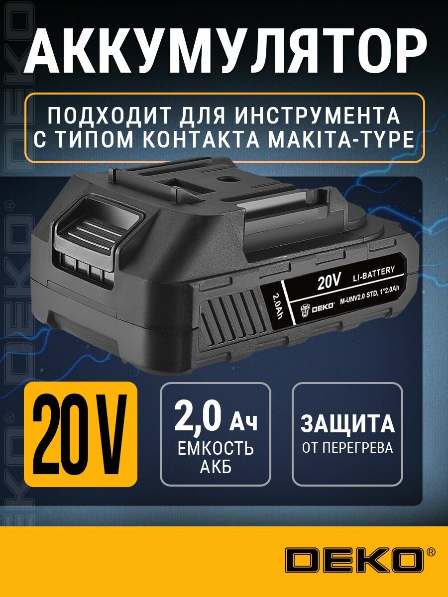 10 цен на Аккумулятор DEKO M-UNV2.0 STD, Li-ion, 20В, 1х2.0Ач, токоотдача 5С