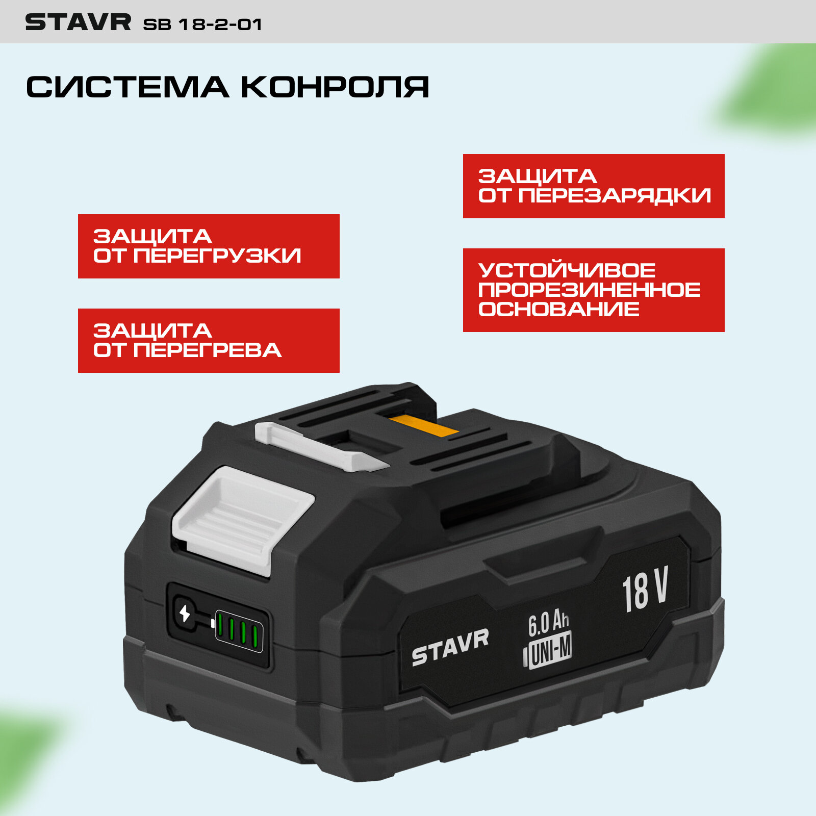 Аккумулятор Stavr SB 18-6-01, Li-Ion, 18В, 6 Ач, слайдер, коробка информация: