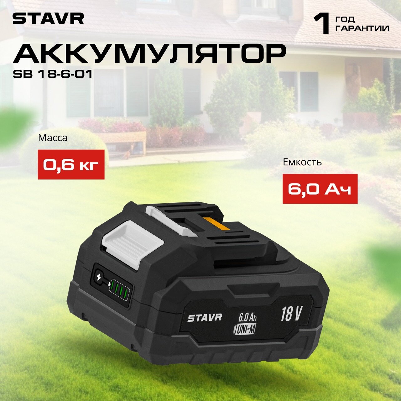 10 цен на Аккумулятор Stavr SB 18-6-01, Li-Ion, 18В, 6 Ач, слайдер, коробка