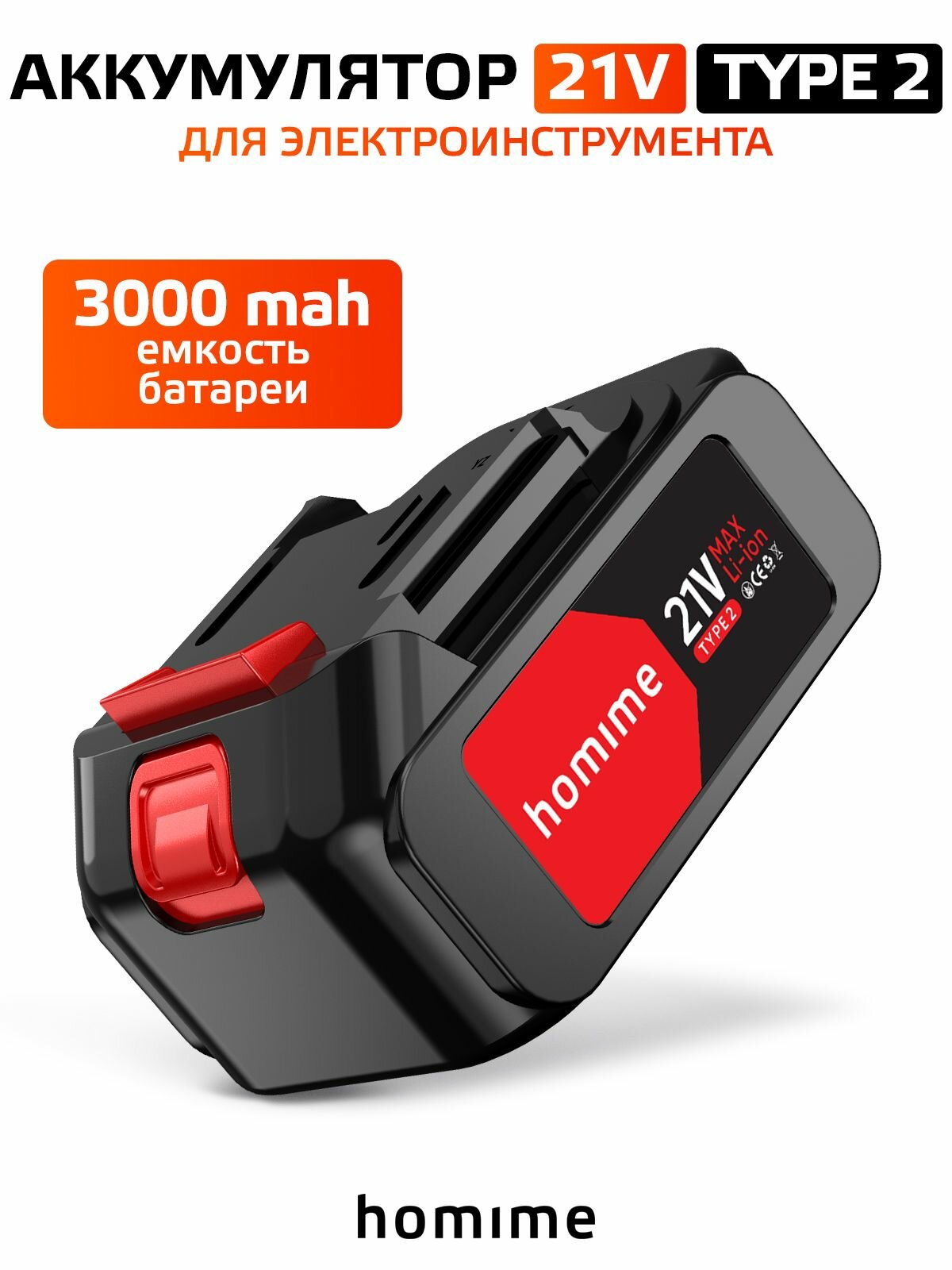 Аккумулятор для электро инструмента Homime Type 2, 3000 mAh, 21V, Li-ion, перезаряжаемая батарея информация: