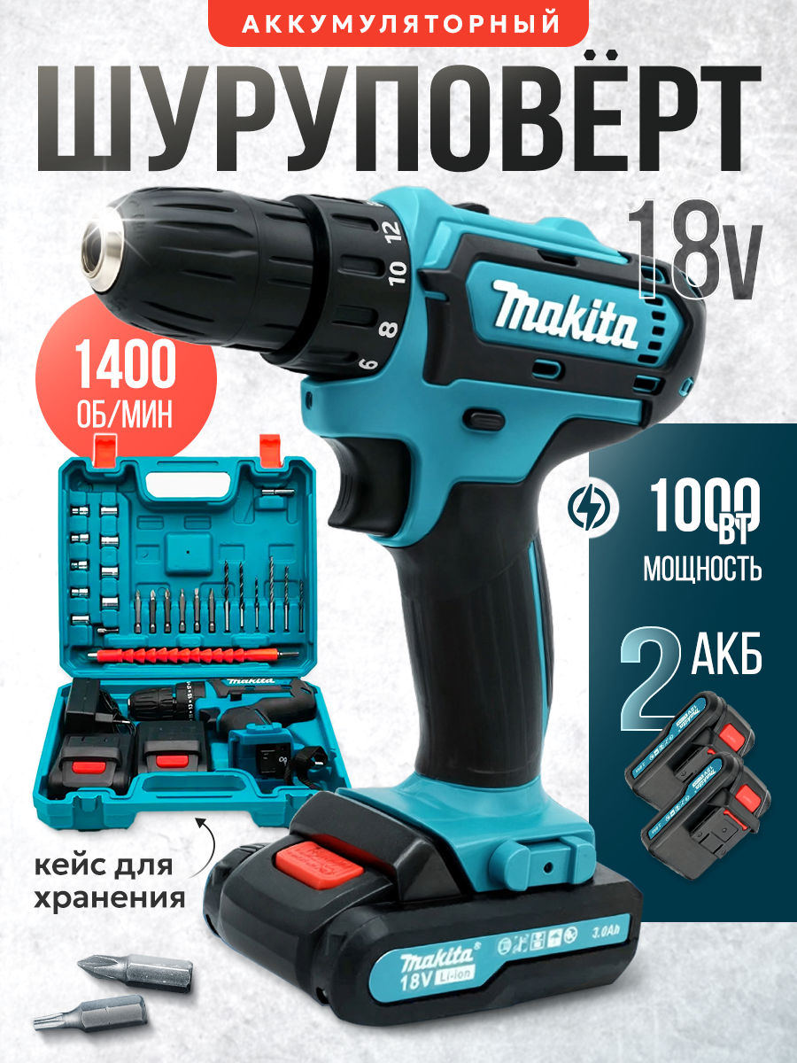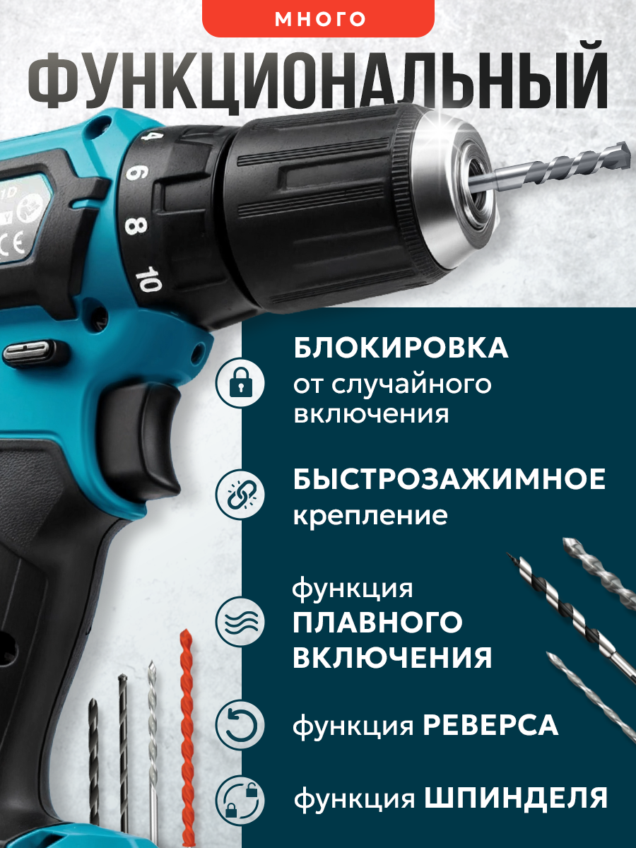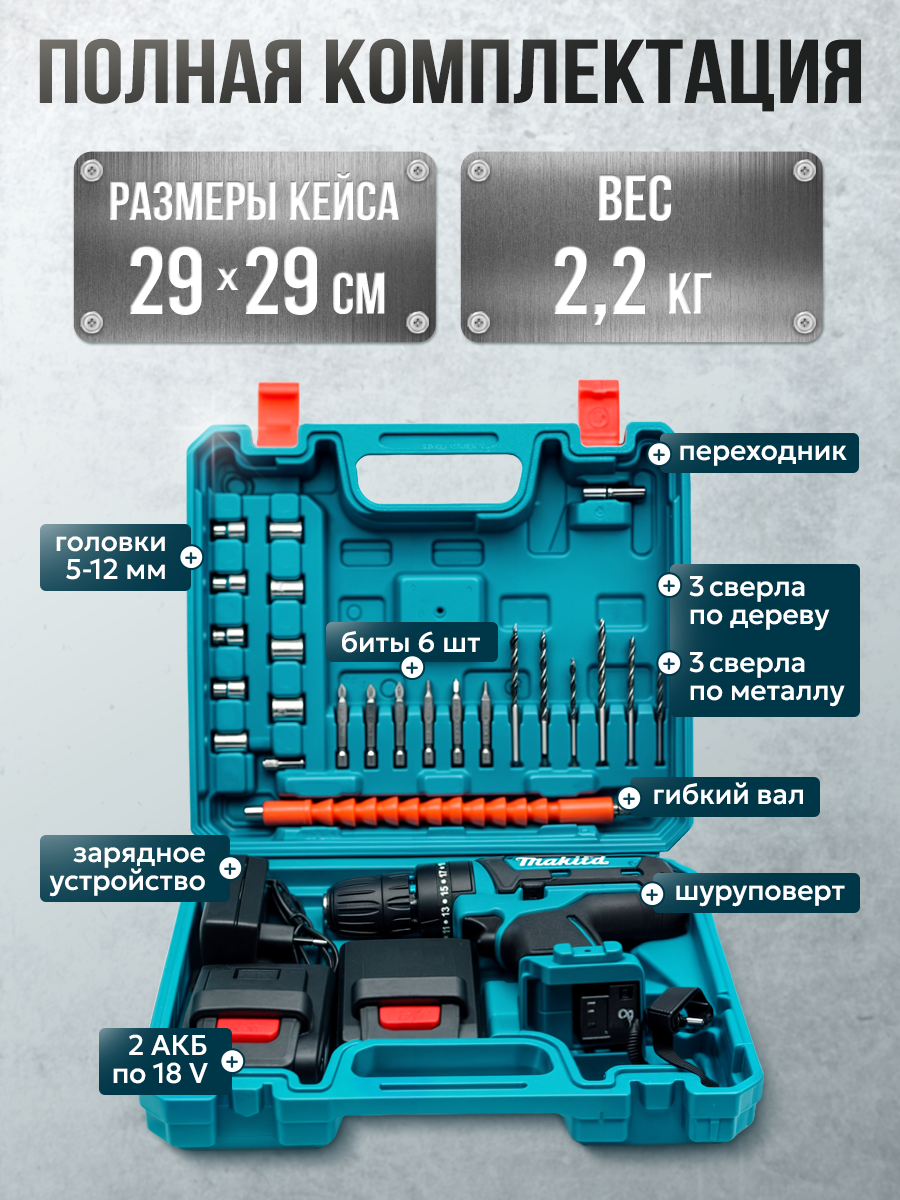 10 цен на Шуруповерт, бесщеточный, 18 В, 2 аккумулятора, 24 насадки, быстрозажимной патрон