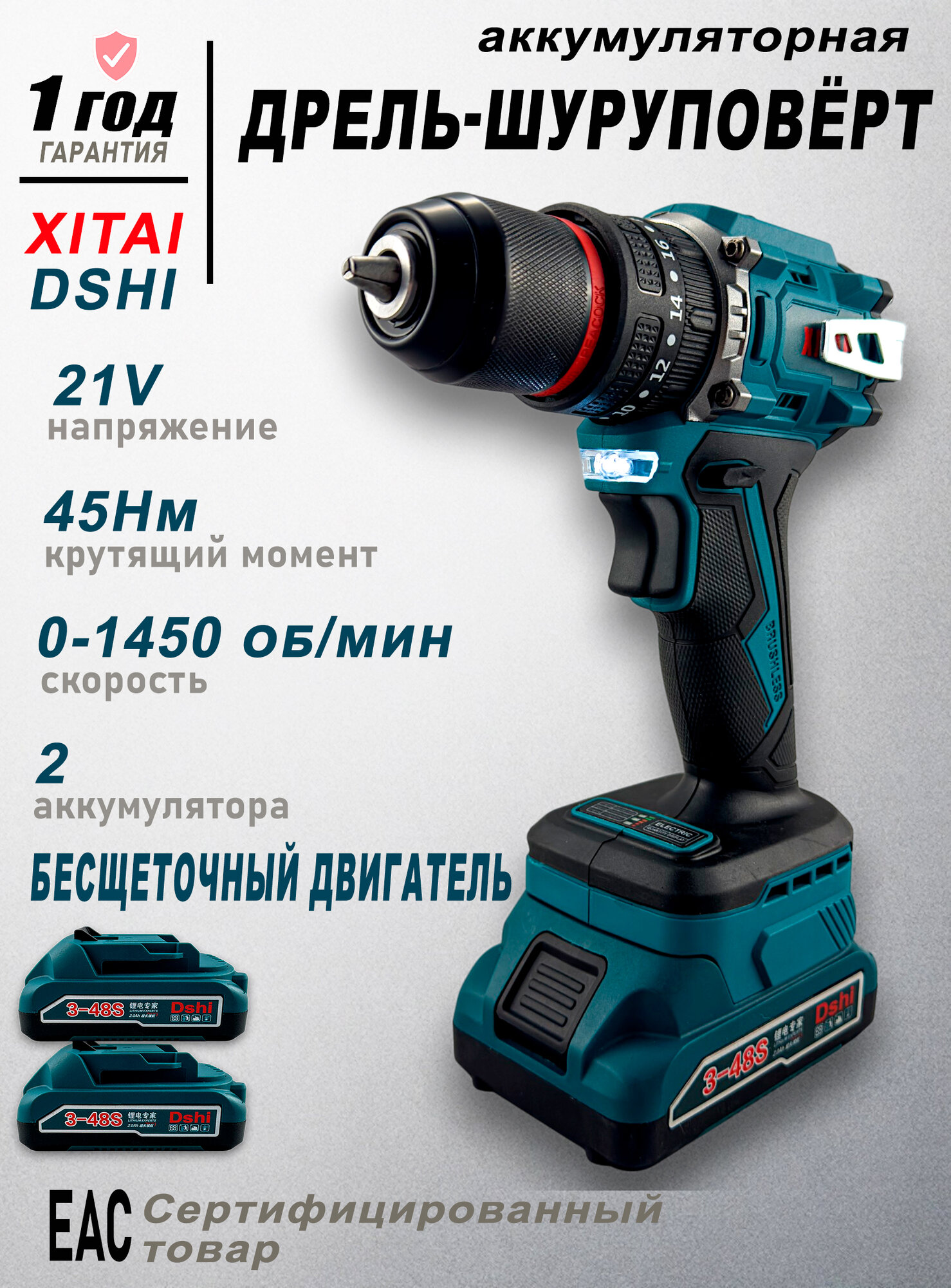 10 цен на Дрель-шуруповерт аккумуляторная DSHI(XITAI)21В, 2АКБ, бесщеточная, ударная