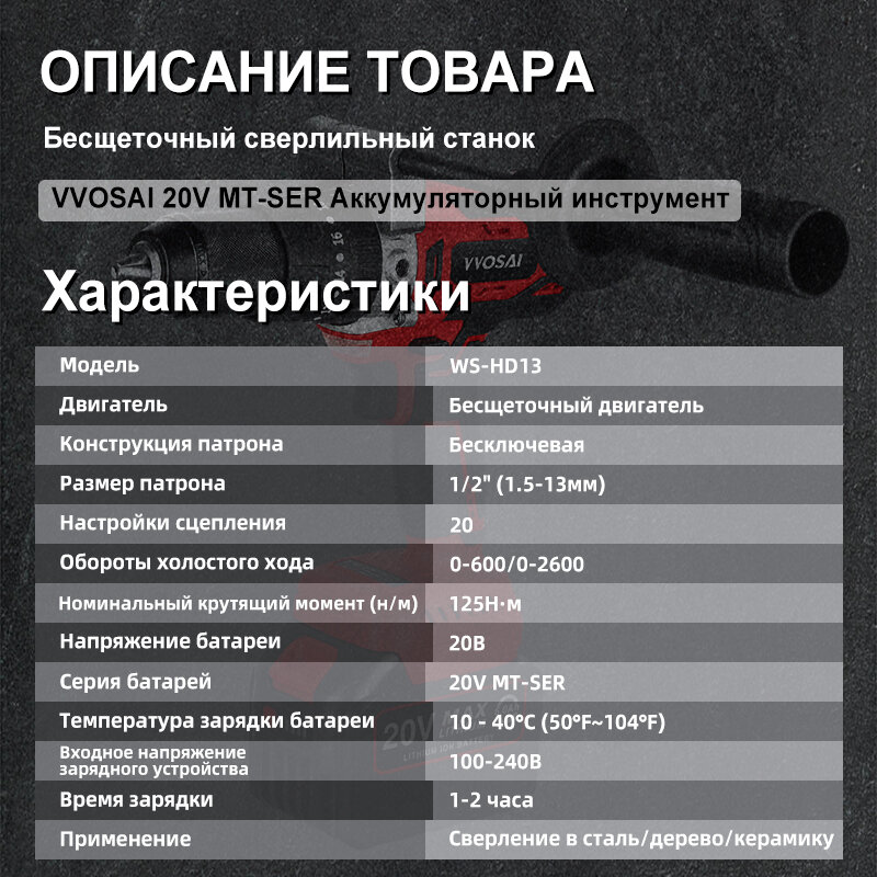 Красная аккумуляторная ударная дрель, бесщеточная, 20 В, 13 мм, 1 аккумулятор 4,0 А·ч информация: