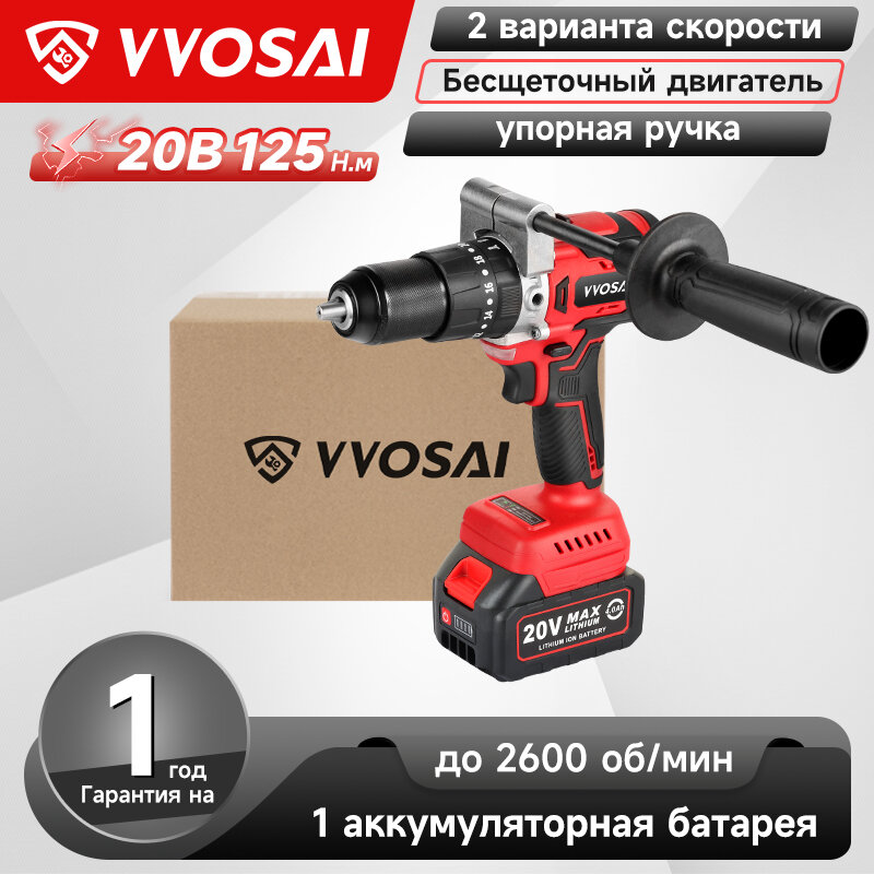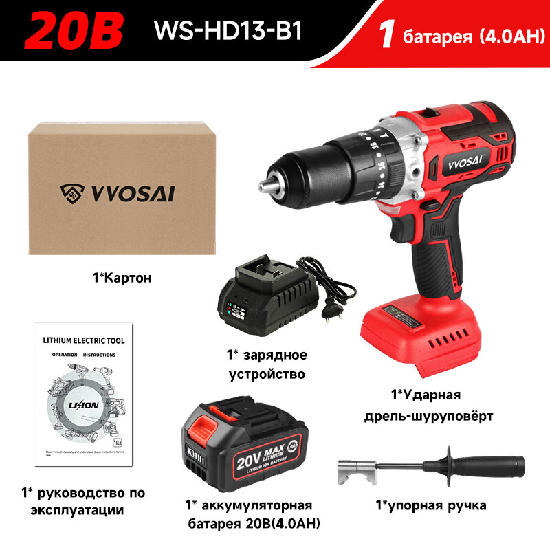 Отзывы на Красная аккумуляторная ударная дрель, бесщеточная, 20 В, 13 мм, 1 аккумулятор 4,0 А·ч