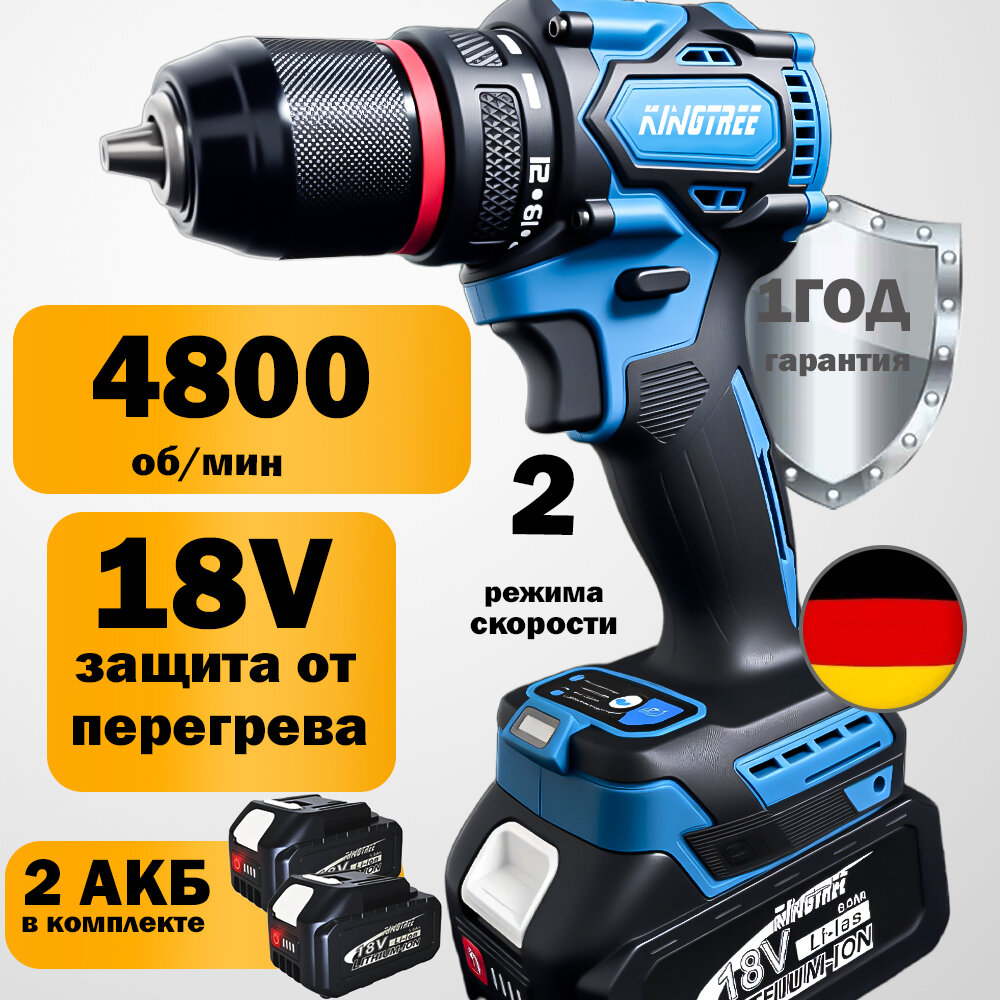 10 цен на Дрель-шуруповёрт KingTree KT-12A Li-Ion 18 В, 5 Ач, 100 Нм, 2 аккум.