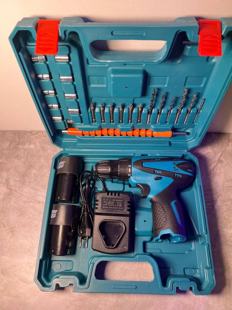 Аккумуляторный шуруповерт 12 Вольт с двумя батареями и двумя насадками в кейсе информация: