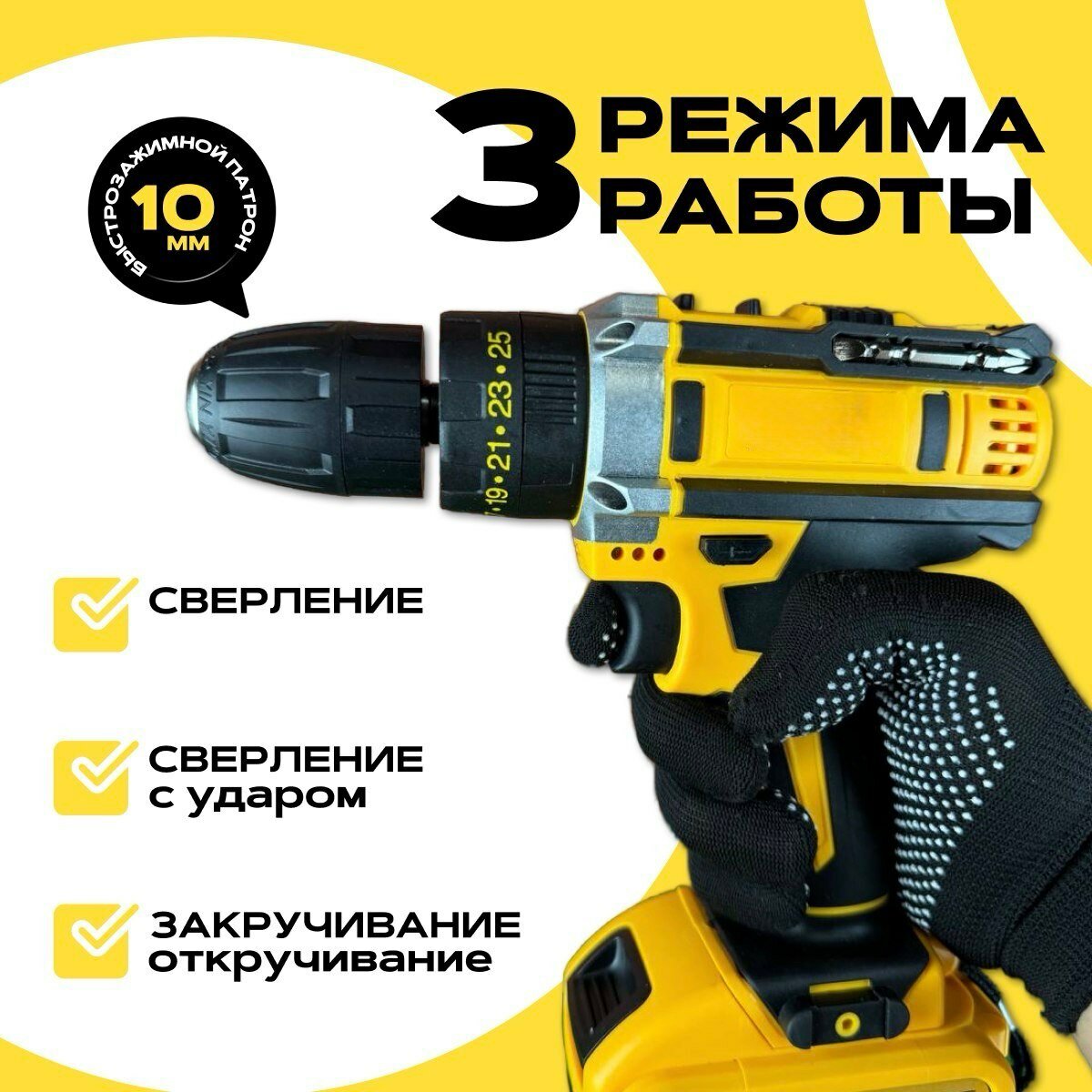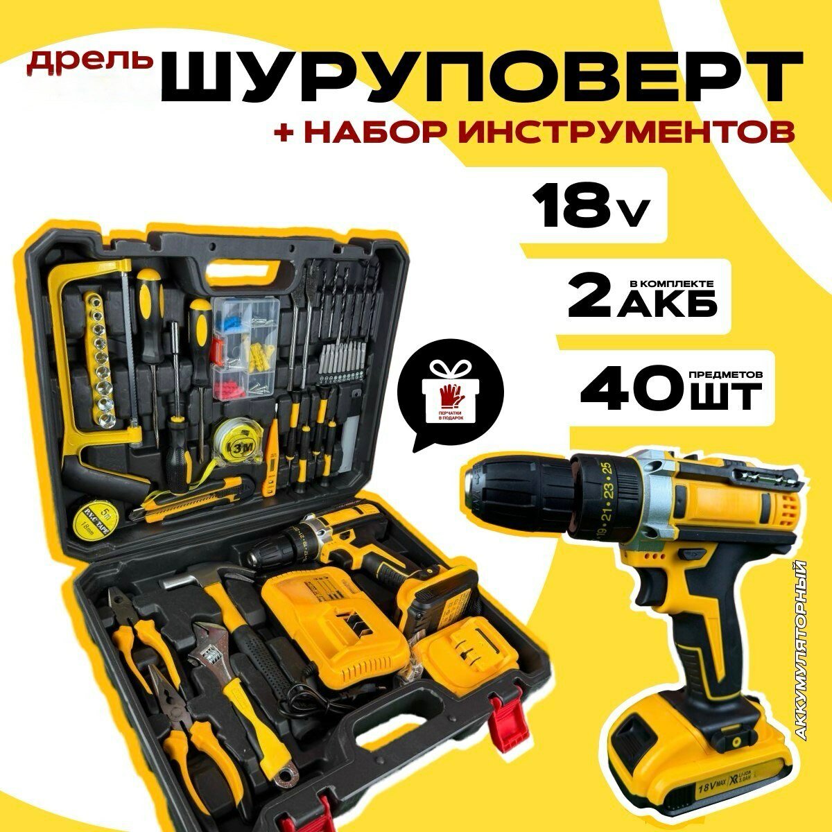10 цен на Дрель-шуруповерт с аккумулятором 18 В, 2 скорости, набор инструментов, кейс