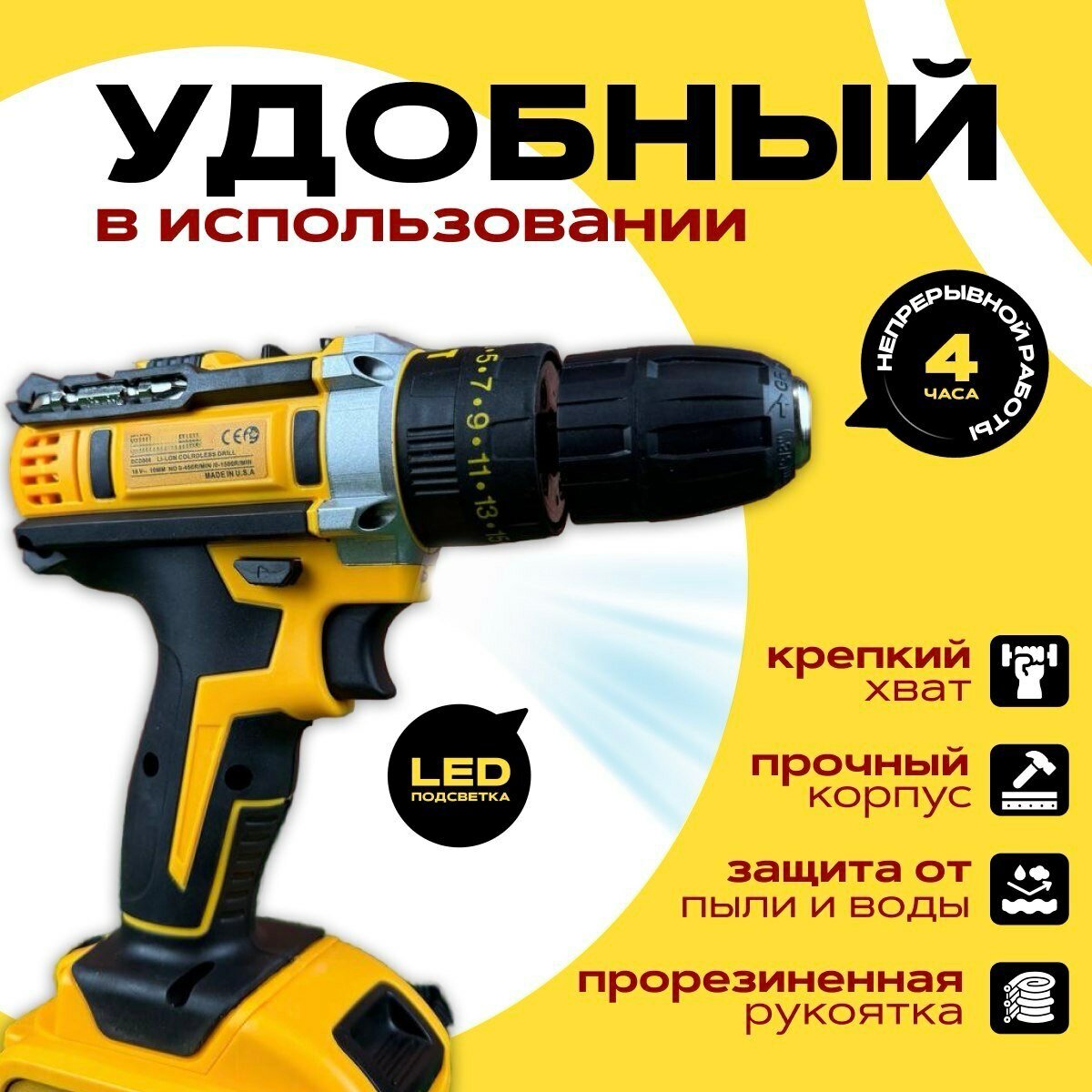 Дрель-шуруповерт с аккумулятором 18 В, 2 скорости, набор инструментов, кейс информация: