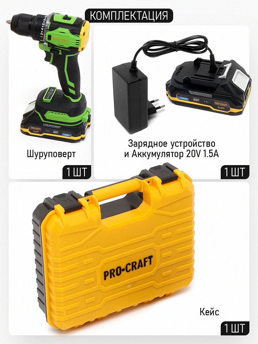 10 цен на Шуруповерт аккумуляторный PA18Pro PROCRAFT 20В 30Нм (АКБ 1,5 Ач + ЗУ + Кейс)