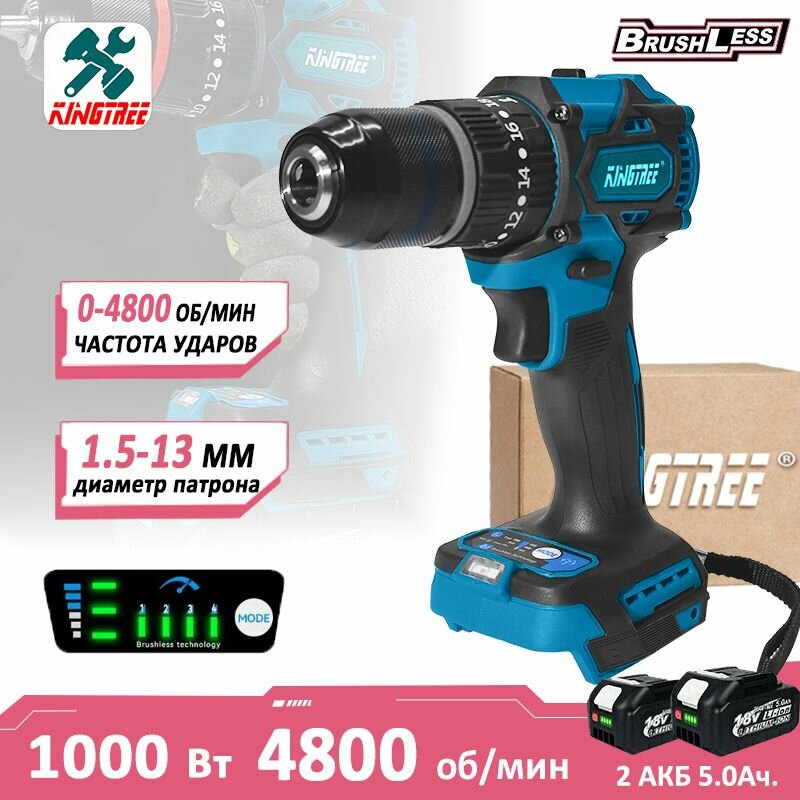 Отзывы на Бесщеточная электрическая ударная дрель Kingtree, 13 мм, подходит для домашней работы(2*батарея напряжением 18 В)