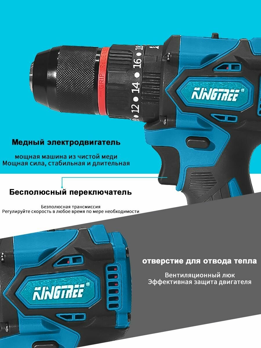 Бесщеточная электрическая ударная дрель Kingtree, 13 мм, подходит для домашней работы(1*батарея напряжением 18 В) информация: