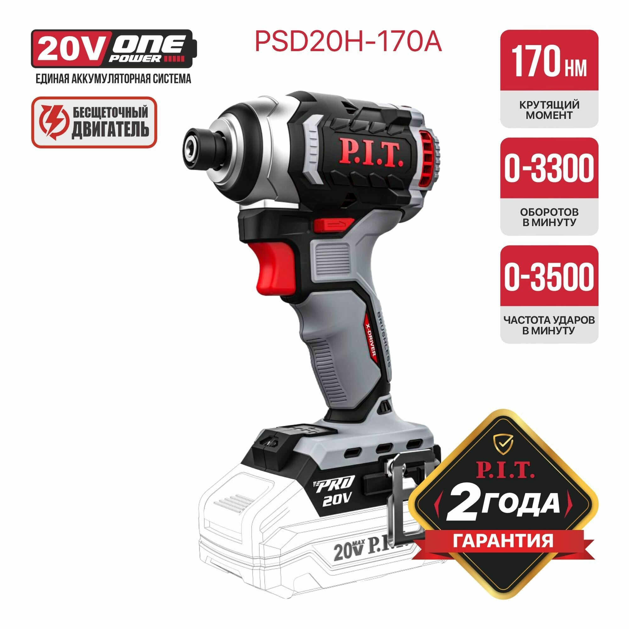 10 цен на Винтоверт IMPACT аккум. бесщёточный P.I.T. PSD20H-170A SOLO (20В, 170Нм, 3ск, 3500уд/м, HEX 1/4")