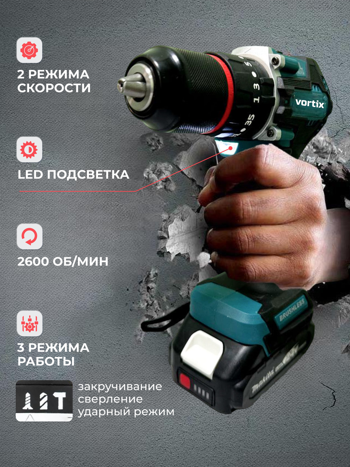 Отзывы на Шуруповерт, бесщеточный, с ударным механизмом, 21V, в кейсе, 2 батареи