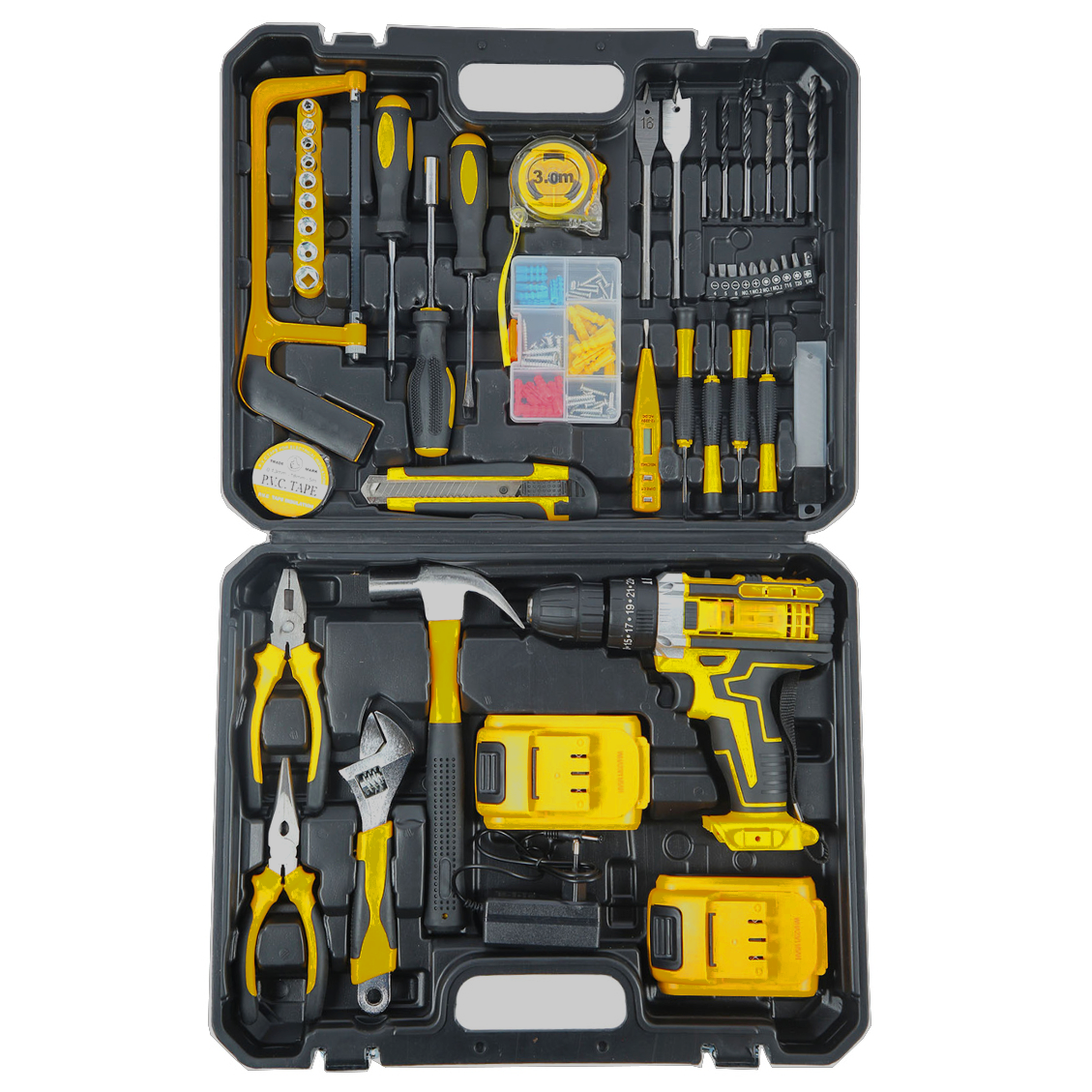 Отзывы на Набор инструментов с шуруповертом дрелью, набор инструментов для дома в чемодане, 50 предметов, универсальный, сверла, отвертки, 2 акб