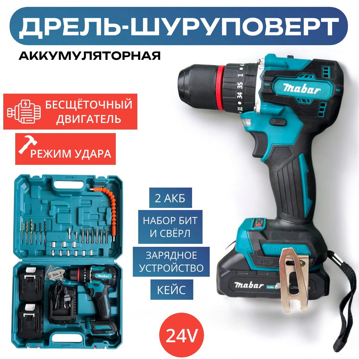 10 цен на Дрель-шуруповерт 24V аккумуляторная, с набором бит и свёрл, 2 АКБ в кейсе