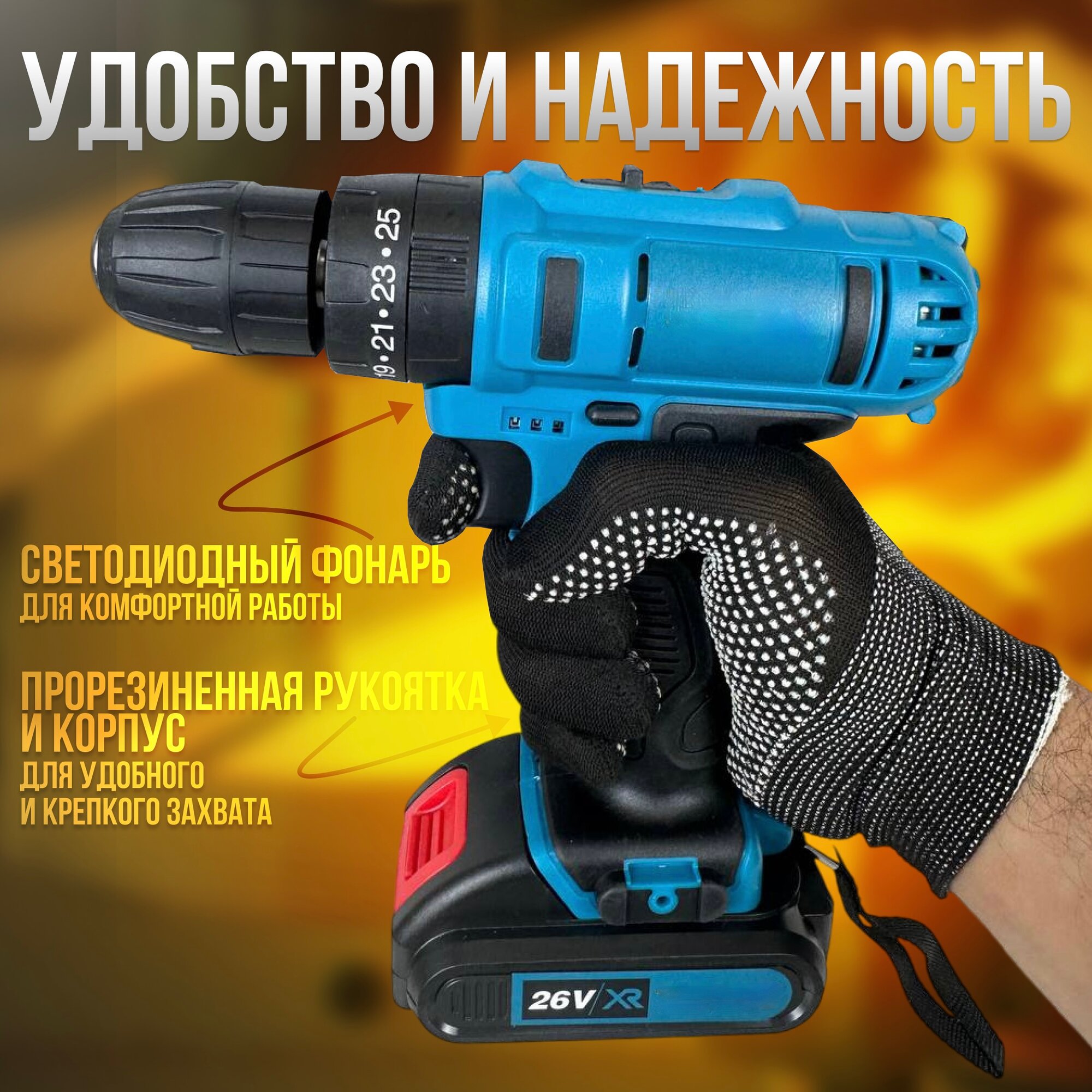 Отзывы на Шуруповерт аккумуляторный 26V дрель с набором инструментов 2 АКБ в кейсе