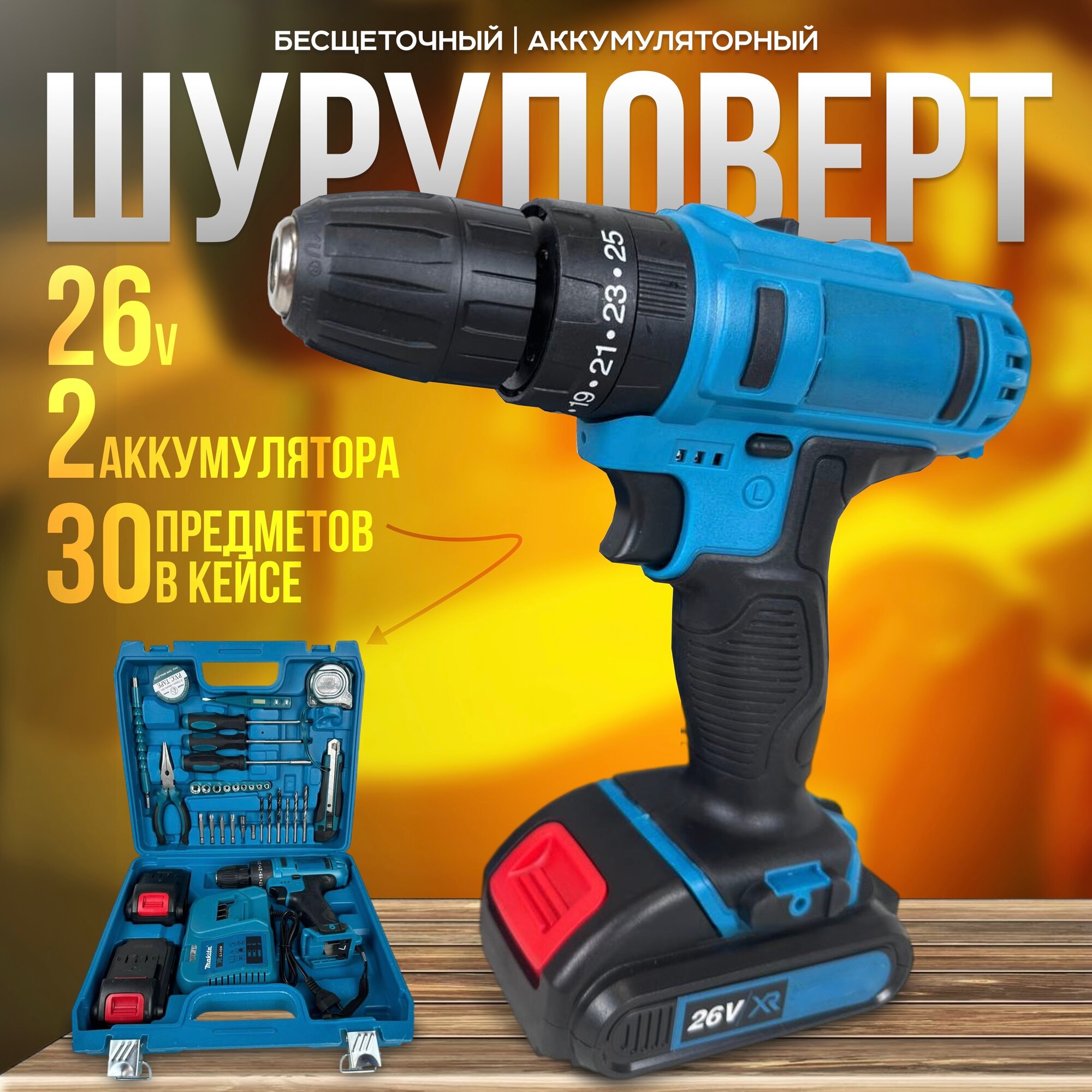 Шуруповерт аккумуляторный 26V дрель с набором инструментов 2 АКБ в кейсе информация: