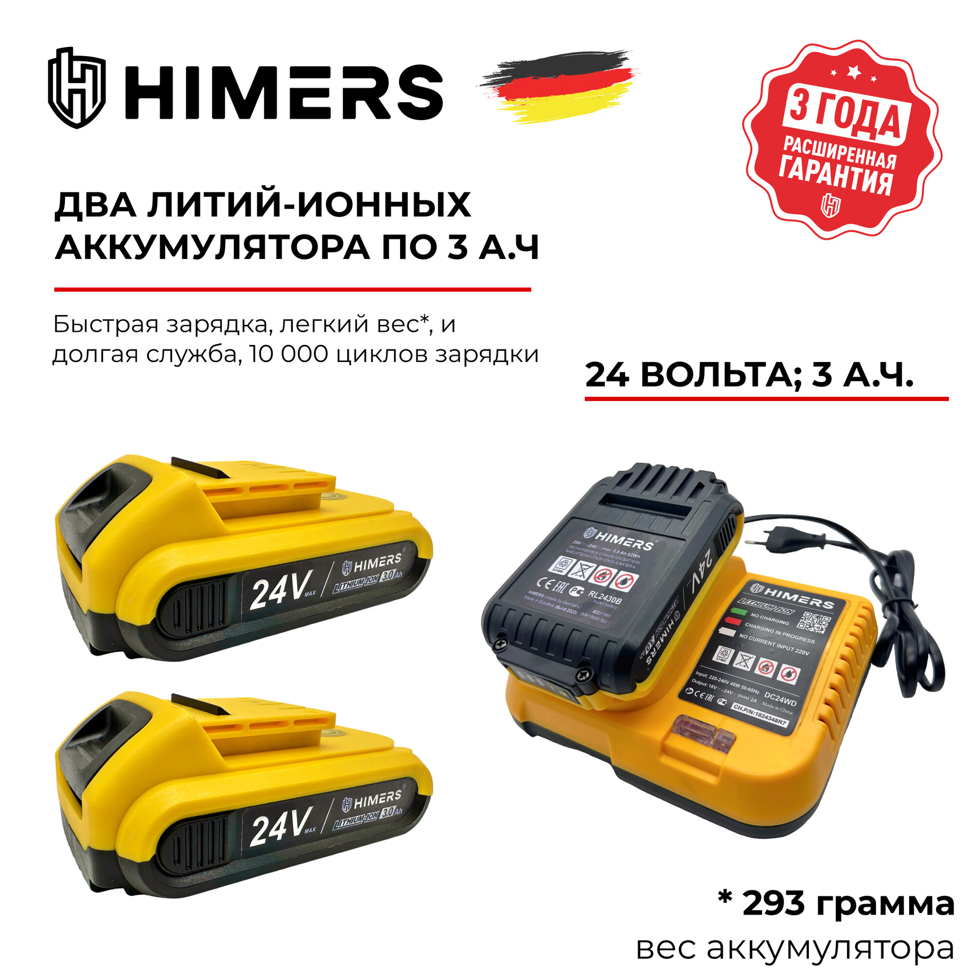 10 цен на Бесщеточный шуруповерт HIMERS DF75Y-BL с набором 34 предмета 24V, 2 АКБ по 3 А. ч, 75 Н. м, 10мм патрон, Кейс, ударный / Версия Yellow special