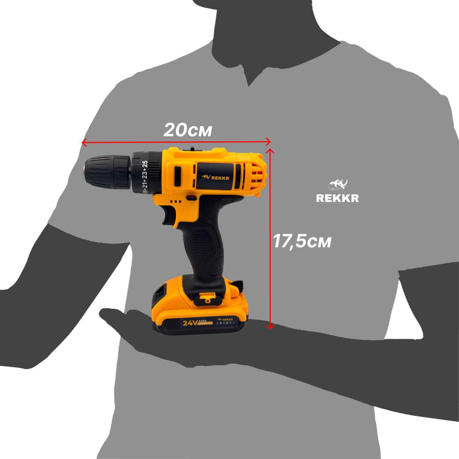 Отзывы на Дрель-шуруповерт аккумуляторный REKKR CDN048YL, 48Нм, 2 аккумулятора 24В 3.0Ач, патрон 10мм, кейс с набором, зарядка