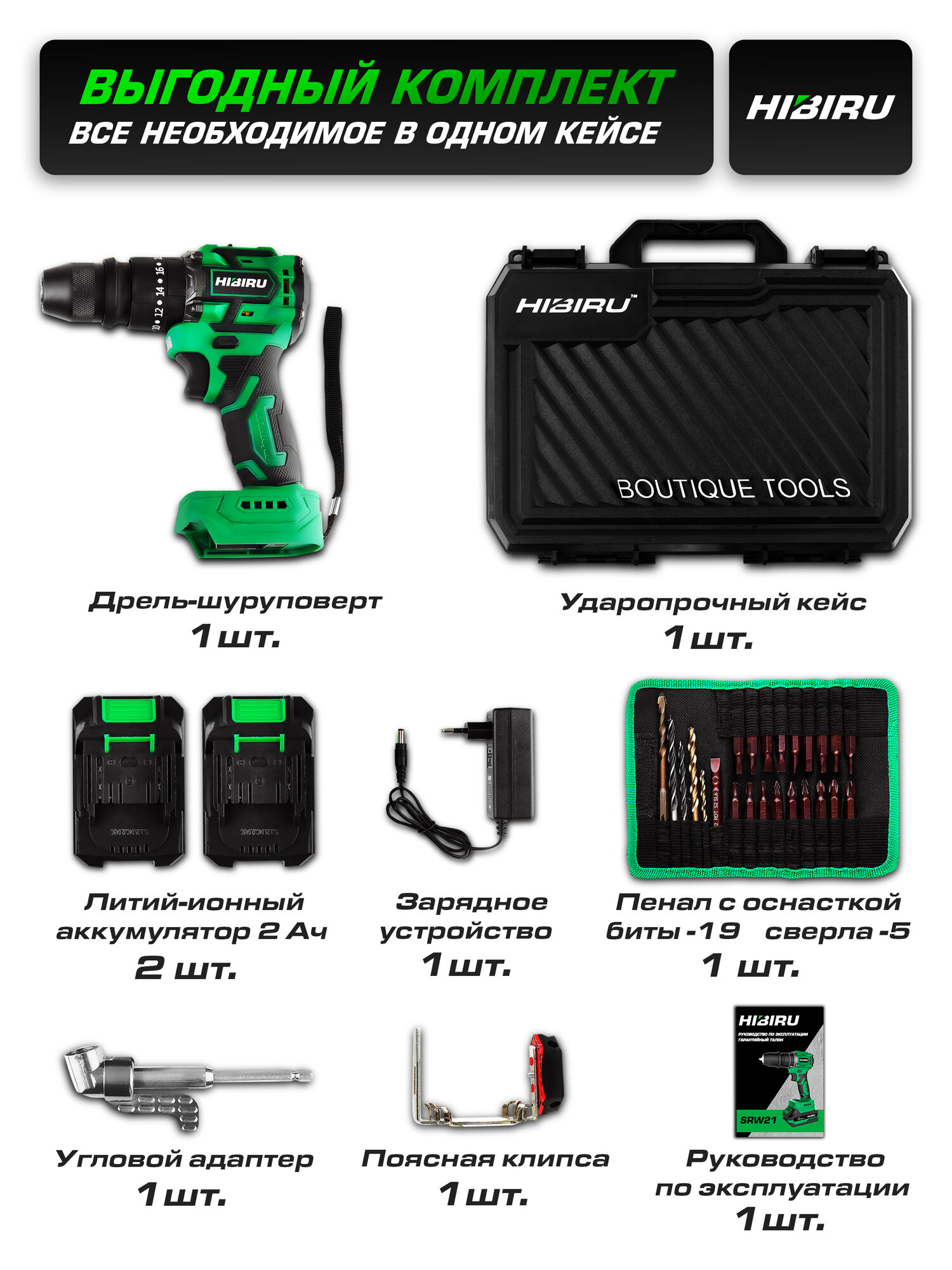 Шуруповерт HIBIRU SRW21, бесщеточный, 21В, 60Нм, Li-Ion, 2 Ач 9 147 ₽