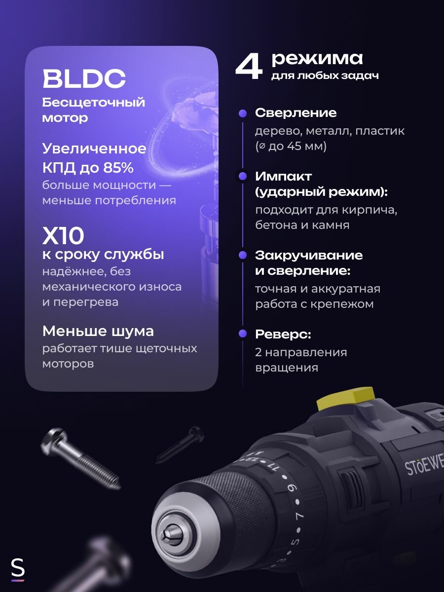 Шуруповерт аккумуляторный Stoewer дрель-шуруповерт Toolset NM25 20В, 25Нм, 1 АКБ 2Ач информация: