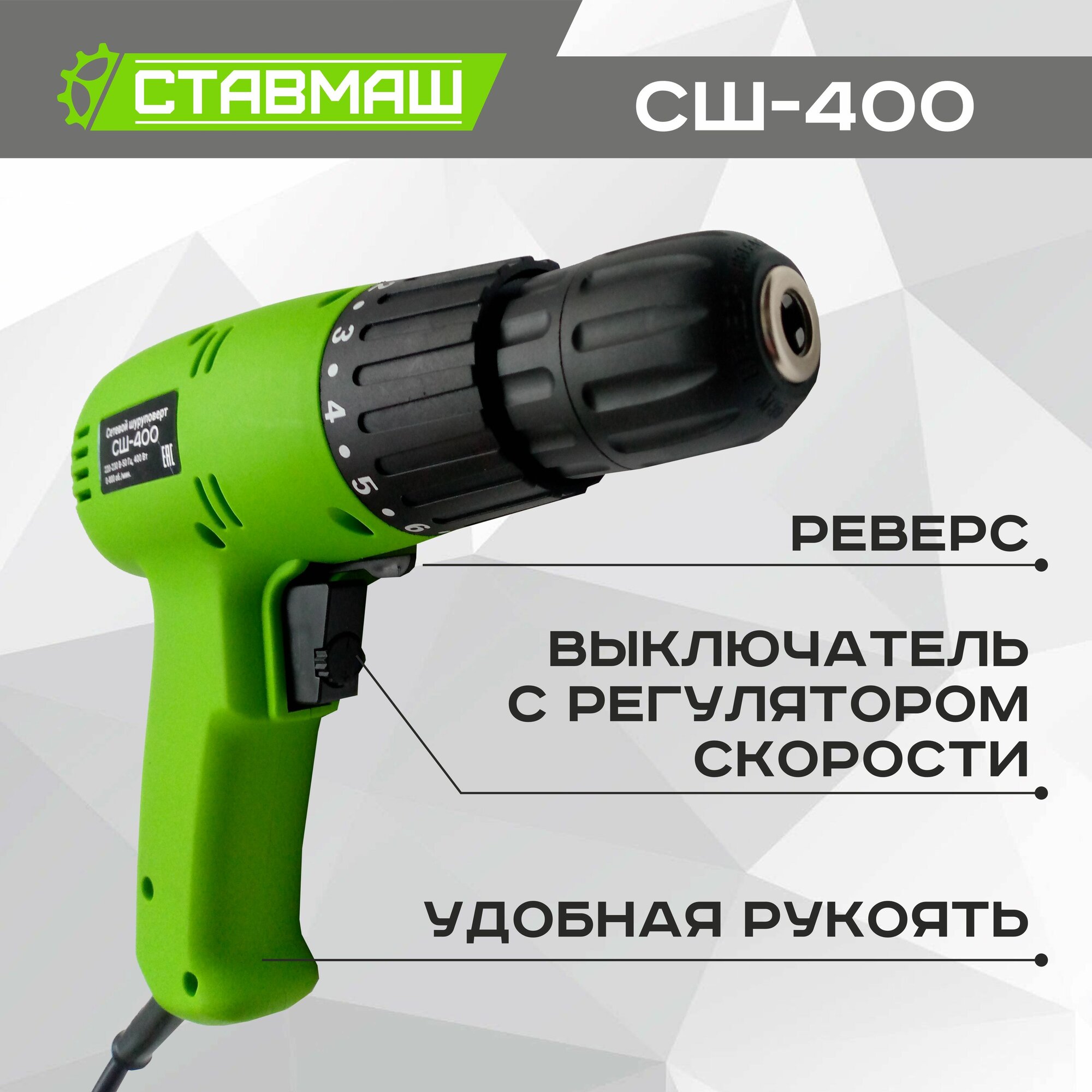 10 цен на Сетевая дрель-шуруповер Ставмаш СШ-400, быстрозажимной патрон