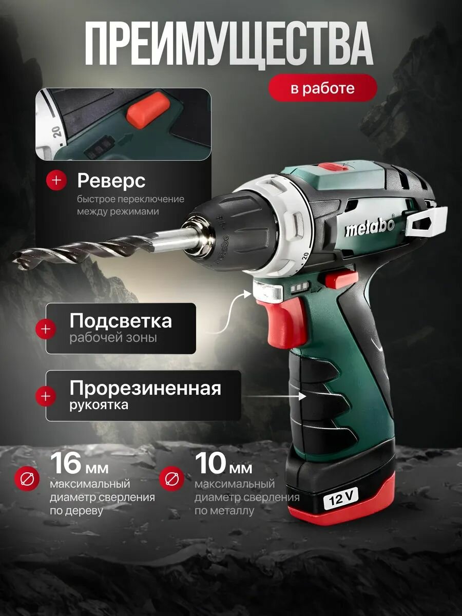 10 цен на Дрель-шуруповерт аккумуляторная Metabo PowerMaxx BS 12V 2.0Ah х1 сумка 618139310