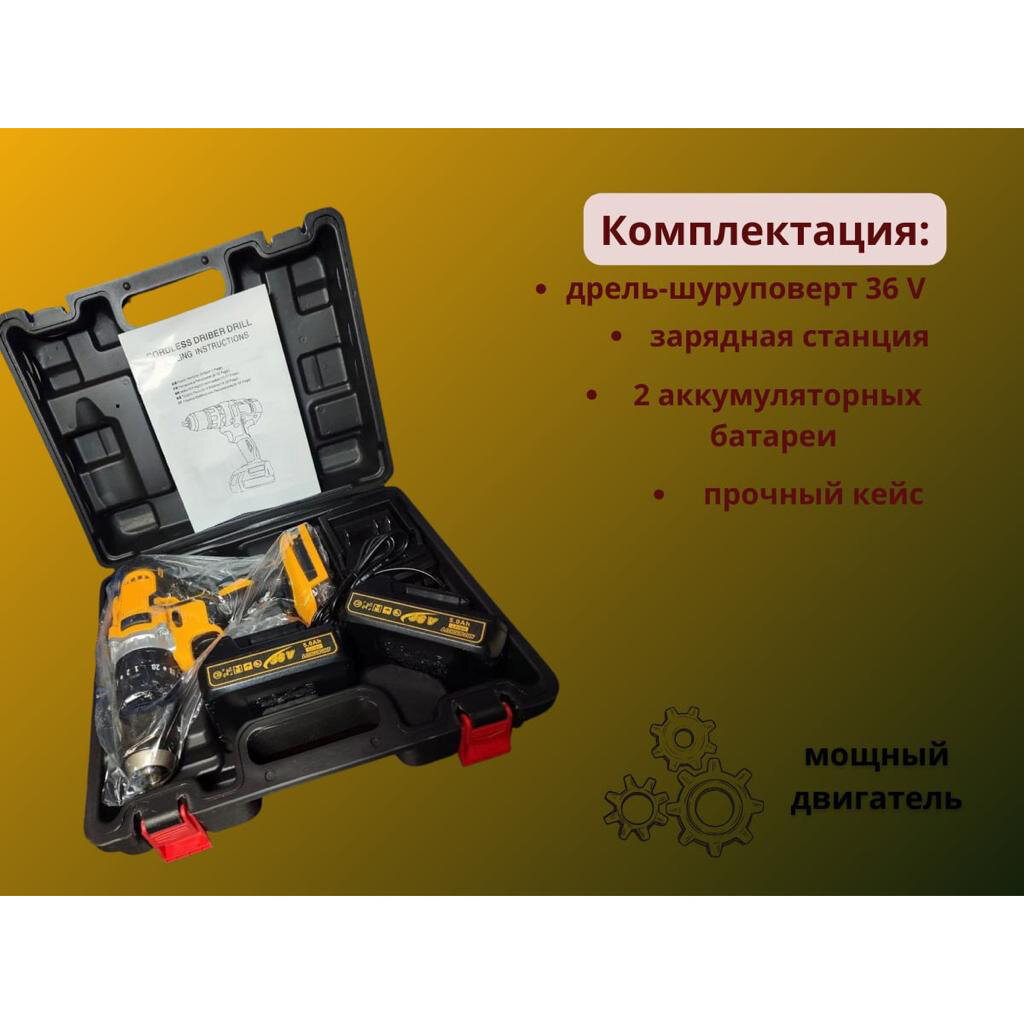 Аккумуляторный ударный шуруповерт 36V с 2 аккумуляторами информация: