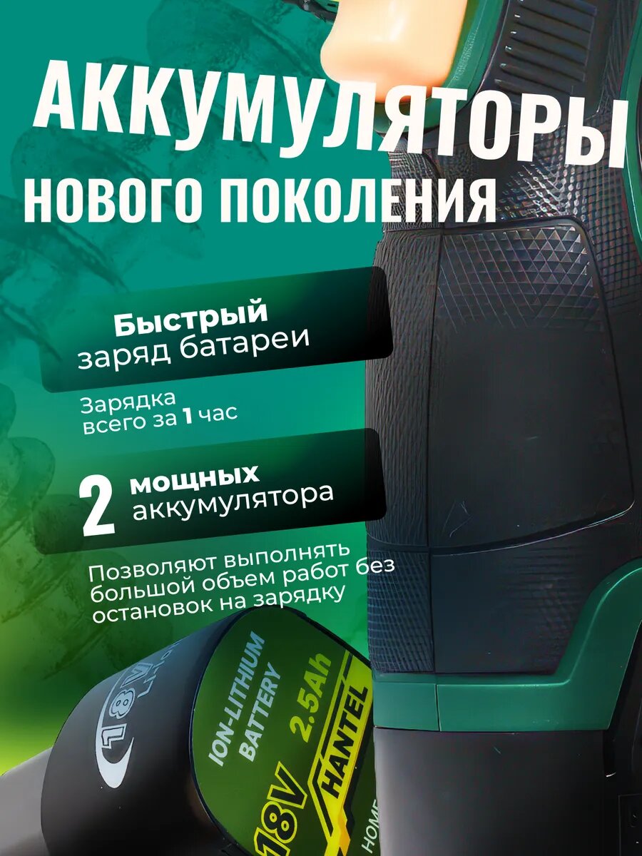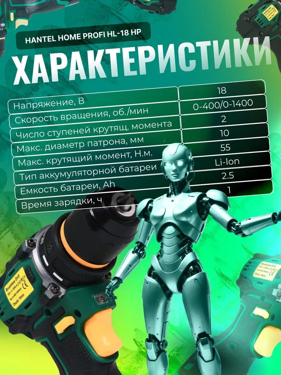 Шуруповерт аккумуляторный бесщеточный HANTEL HL-18 HP информация: