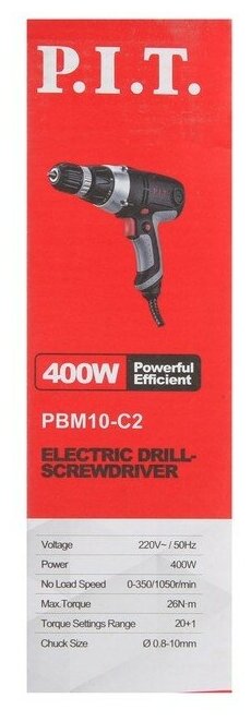 Дрель-шуруповерт PIT МАСТЕР PBM10-C2, быстрозажимной патрон, 2 скорости, 400 Вт информация: